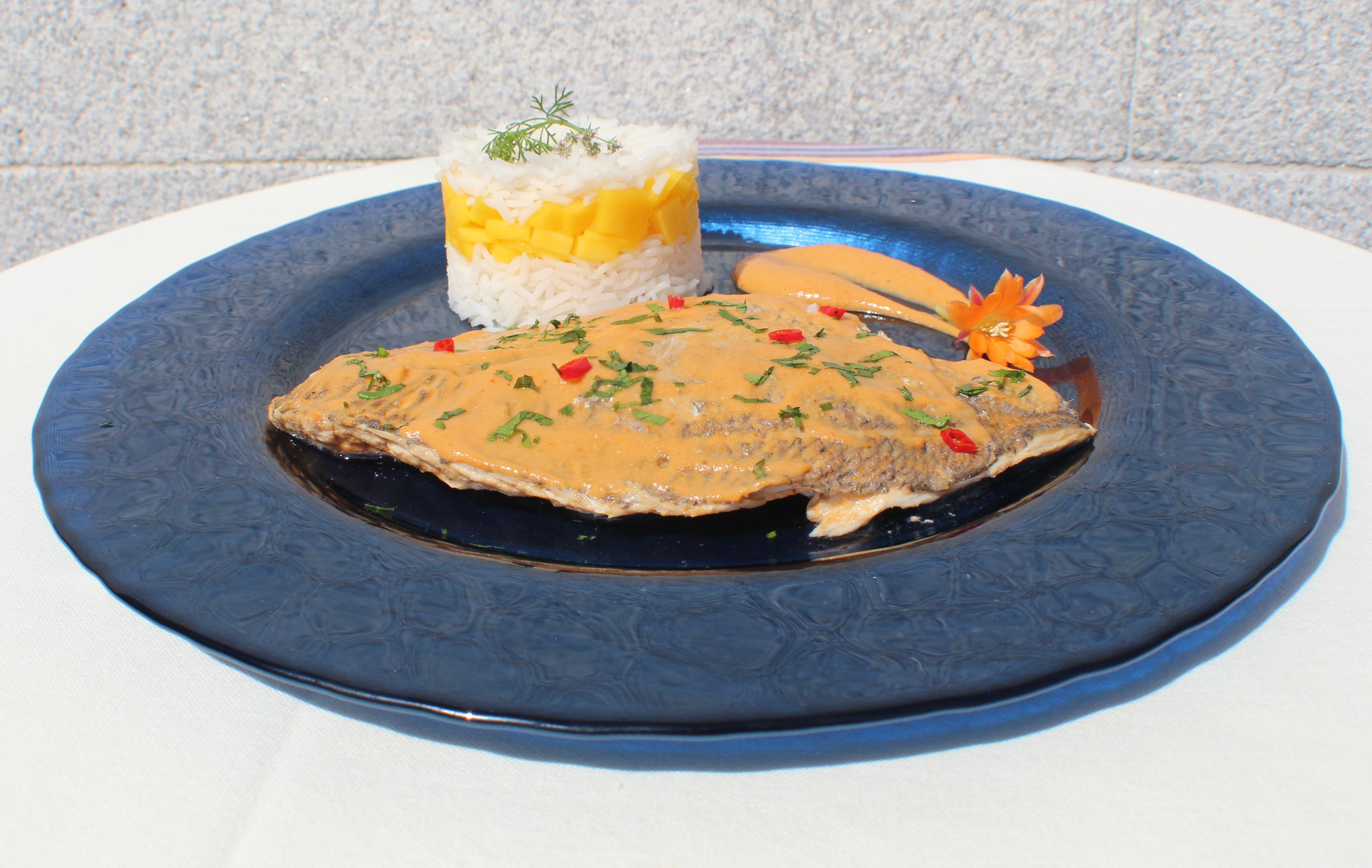 Para acompañar, nada mejor que un arroz jazmín mezclado con la frescura y dulzor del mango.