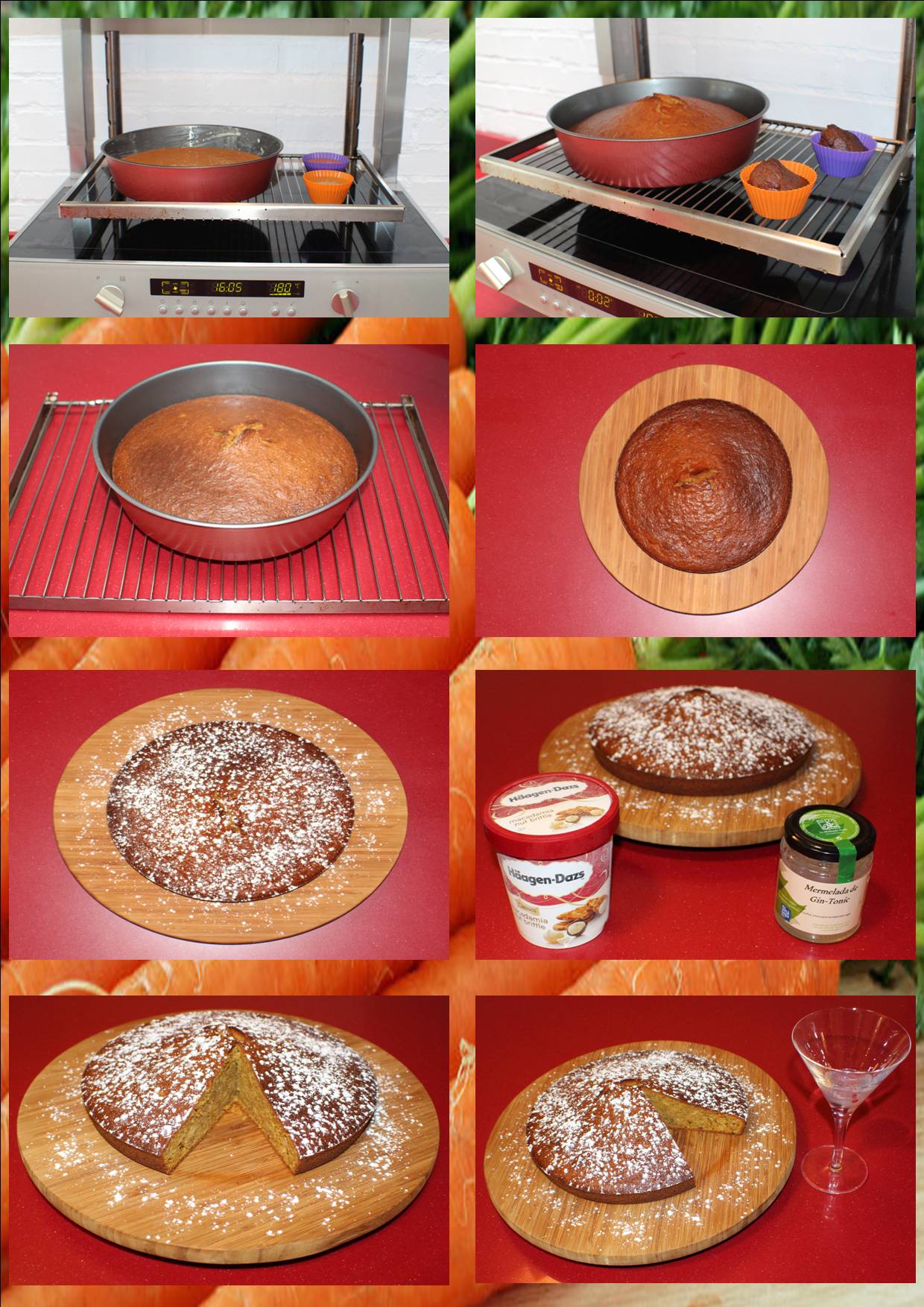 300grs de zanahoria, 250grs de harina, 4 huevos, 140grs de azúcar moreno, 40grs de frutos secos (almendra, avellana, nuez…etc), 15grs de levadura química, 1 naranja, 2 cucharadas de café de canela molida, 1 cucharada de café de nuez moscada, pimienta de Jamaica, sal, mantequilla y 130ml de aceite de girasol.