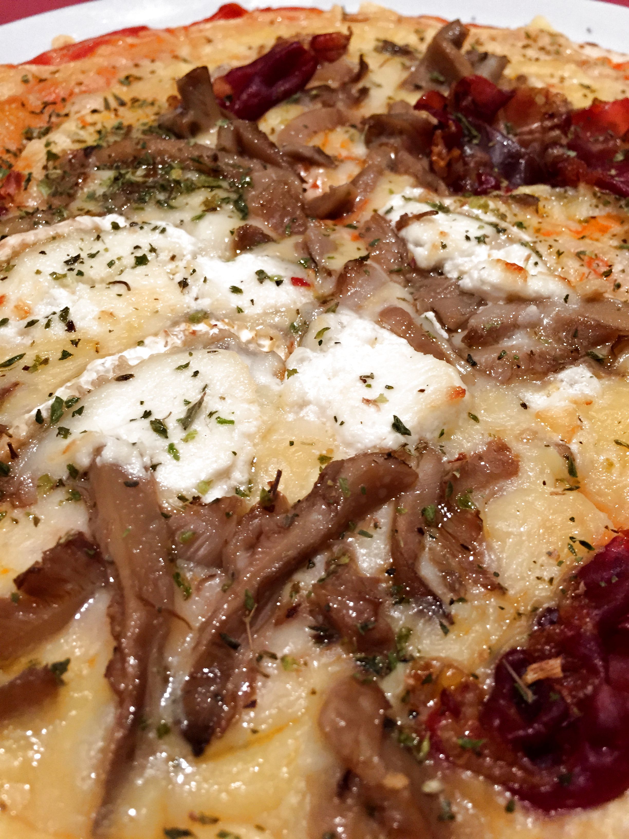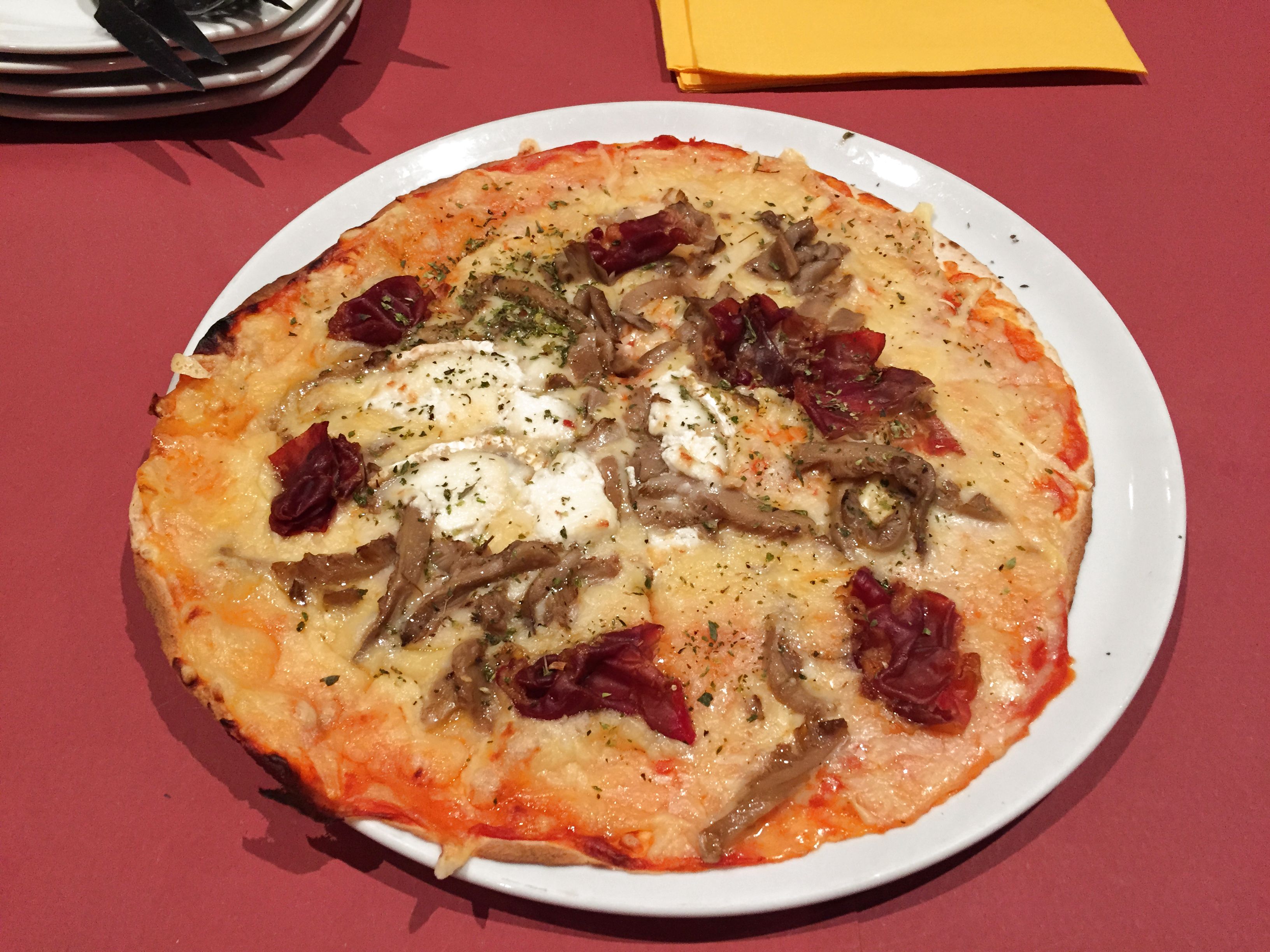 Pizza Clavel: con cecina, setas y queso de cabra. Sin lugar a duda uno de los imprescindibles.