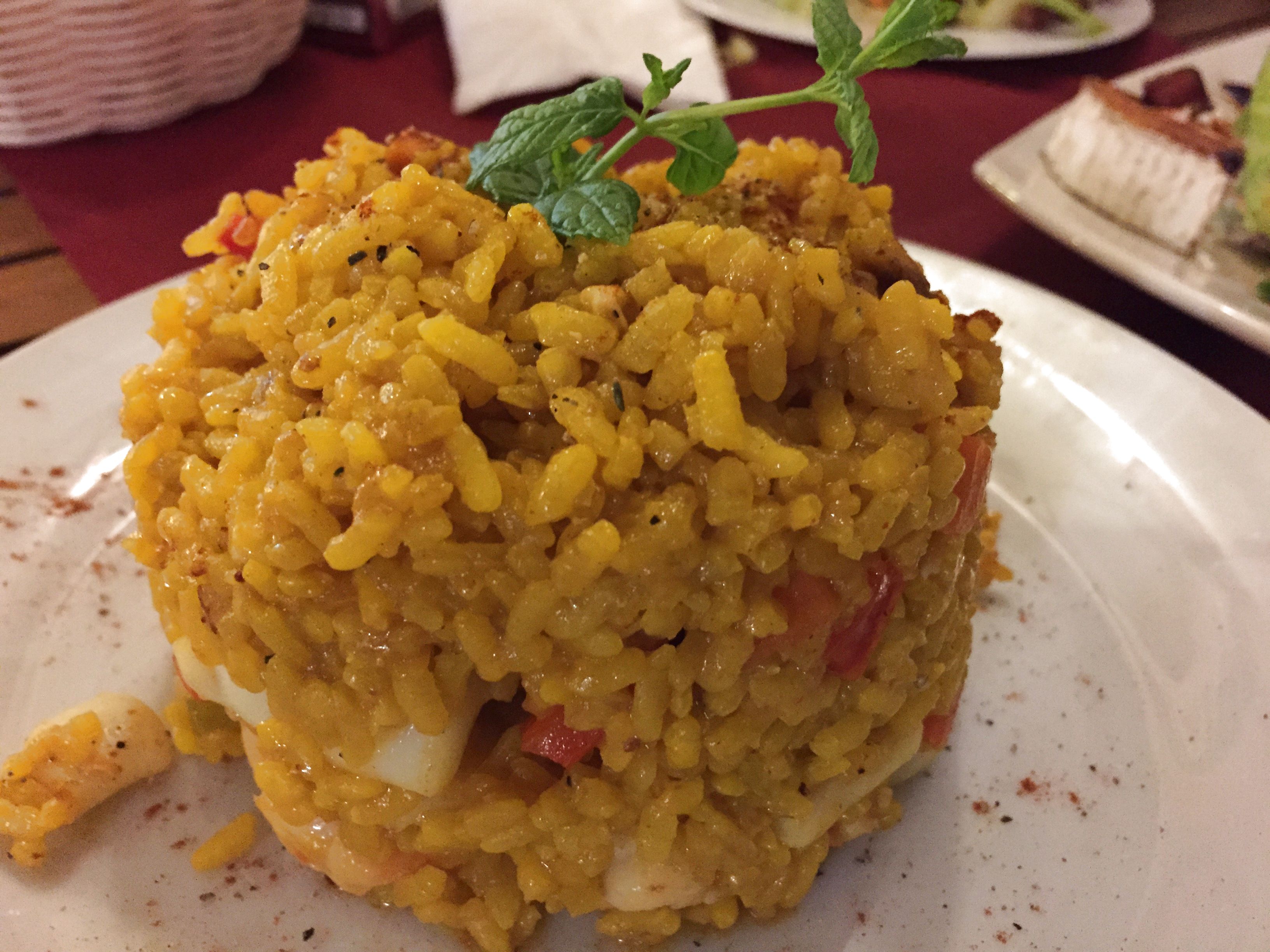 Turno del plato fuerte que nos había llamado la atención en carta, el wok de langostinos y calamares con arroz. Sin duda, como podéis comprobar por la foto, existe un error conceptual de lo que es un wok y el nombre resultó engañoso o al menos no era lo esperado.  Se dejó comer pero sin entusiasmos.