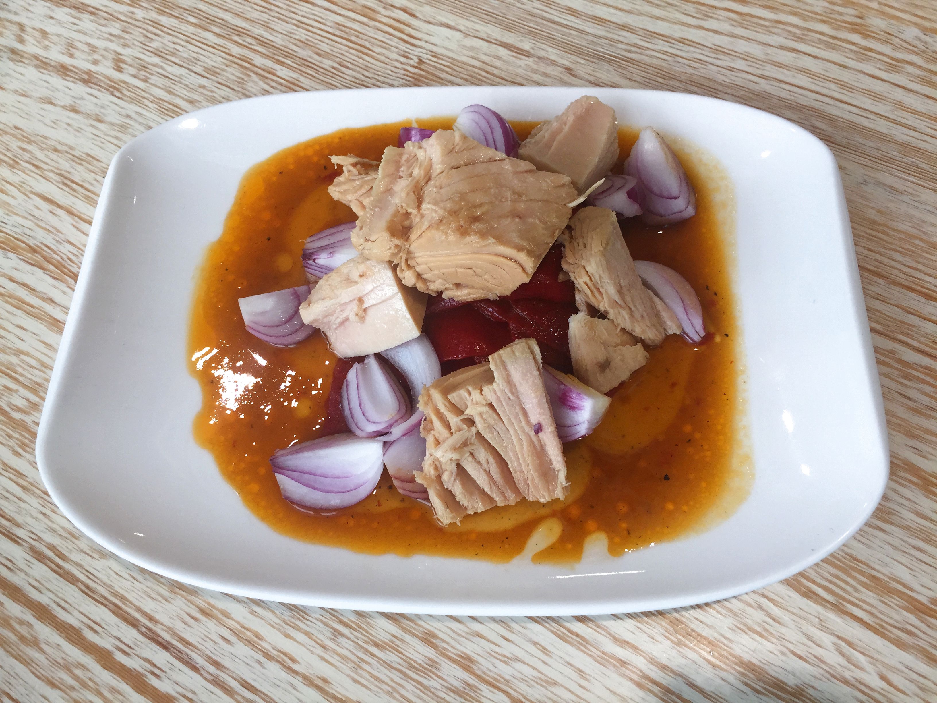 Unos excelentes langostinos de Huelva, unas hermosas y carnosas navajas a la plancha junto con un tronco de bonito con cebolla y pimientos del piquillo, fueron los primeros actos en los que aparece el Príncipe Sigfrido y su primer encuentro con los cisnes, donde conoce al cisne blanco, la princesa Odette, aunque a diferencia de él, seguimos creyendo en encontrar al amor por más hechizos el brujo Rothbart lance sobre los cisnes.