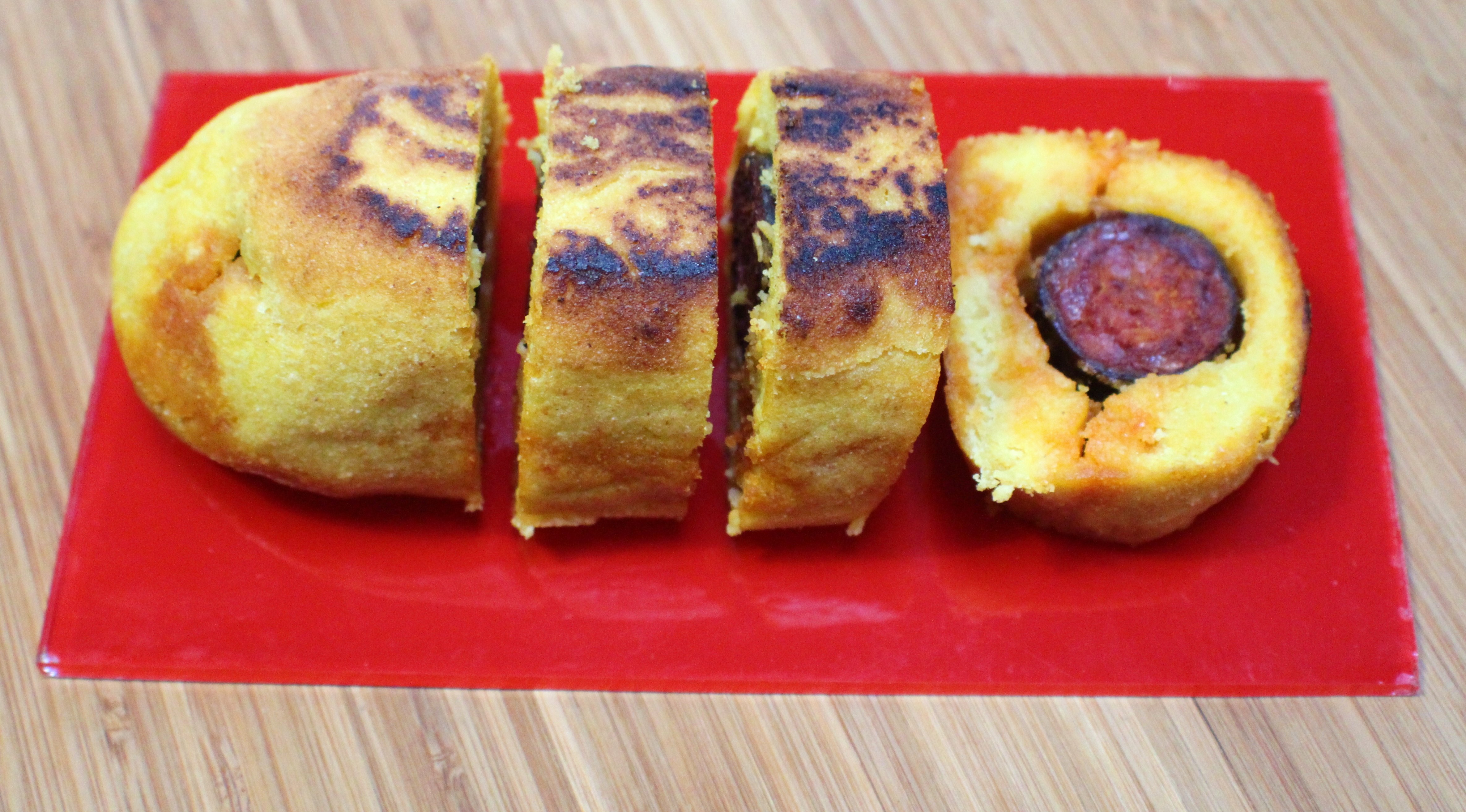 Lo que hace diferente a esta bollo es su composición, he utilizado harina de maíz y su relleno en vez del clásico chorizo ha sido sustituido por un sabadiego. El conjunto resulta más contundente y por eso lo mejor es que lo elaboréis para compartir a modo de aperitivo aunque también podéis rebajarlo mezclando harina de trigo en proporción de un 10%.