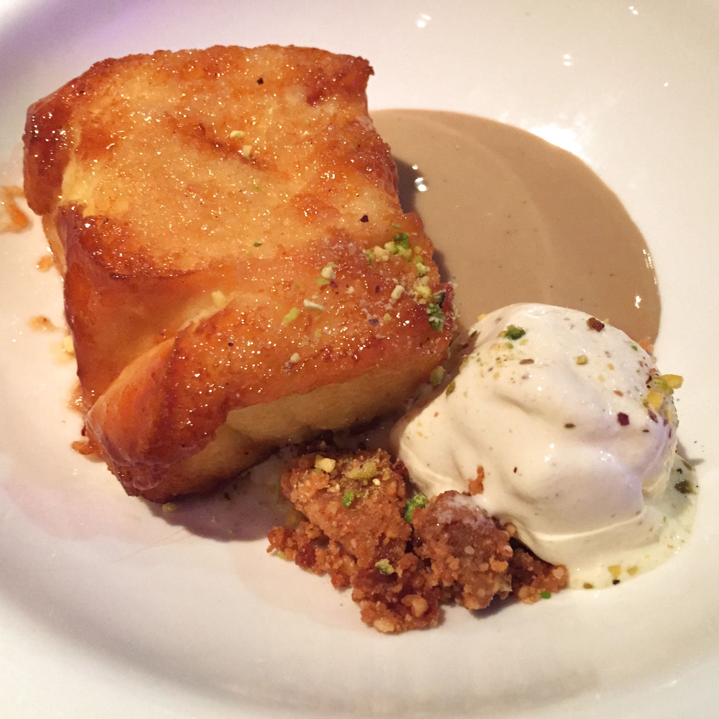 Para el postre nos decidimos para compartir entre los cuatro una torrija de brioche caramelizada con crema de moka y helado de vainilla bourbon, fue la opción más dulce.