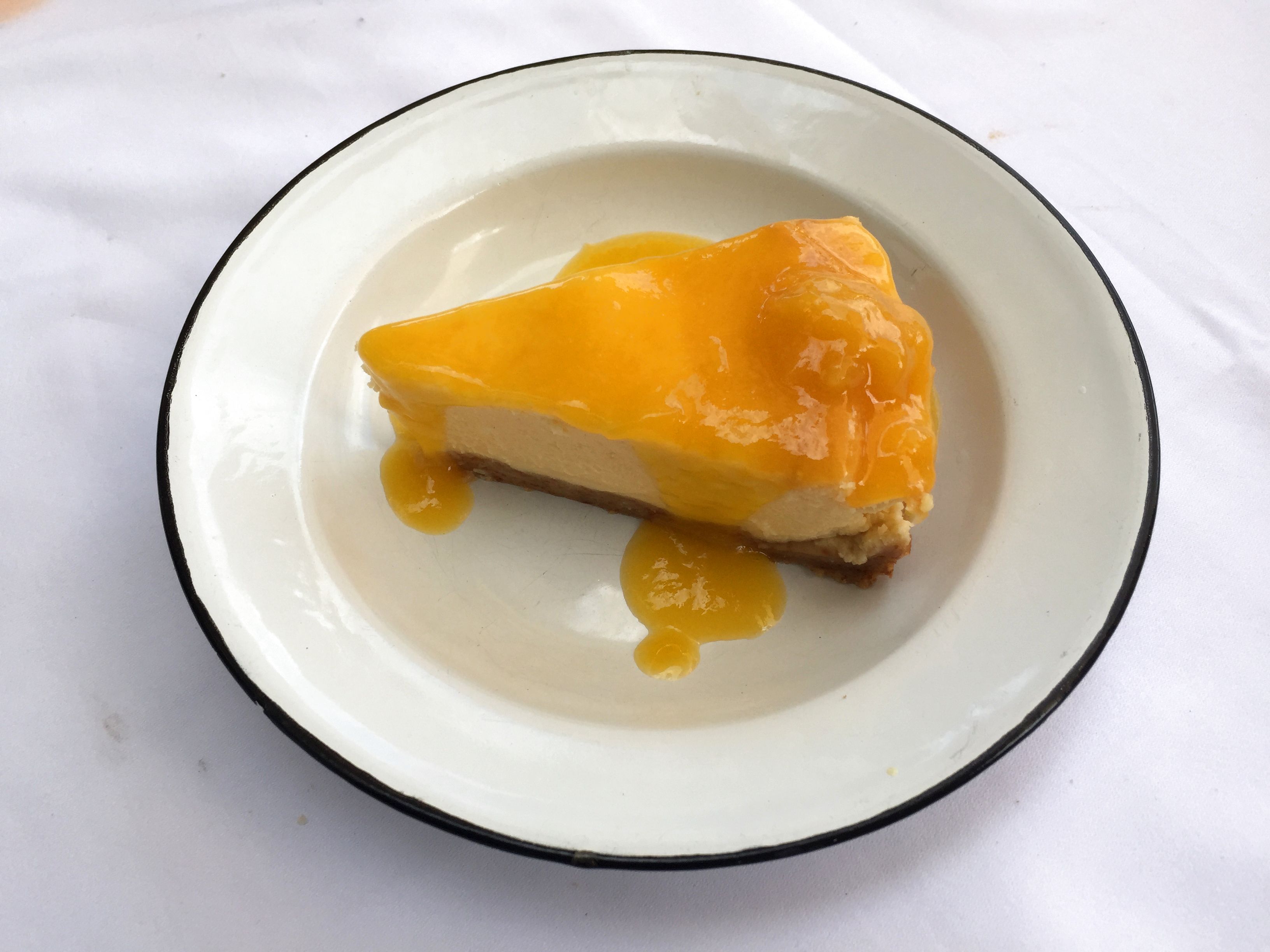 El postre que eligieron con este menú fue un helado de mojito, mucho más acertado que la tarta de queso de la Fontona con salsa de melocotón, con una salsa de frambuesa que utilizan en otros postres seguro me hubiese encajado mejor, pero claro, esto va en gustos.