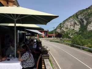 Con semejante fartura sólo fuimos capaces de hacer en coche los 3,5 kilómetros que nos separan de Las Caldas. Un gin tonic en la terraza de La Vizcaína cumpliría su función de ayuda a la digestión, aunque lo que realmente apetecía era coger una habitación en el Balneario para disfrutar una siesta.