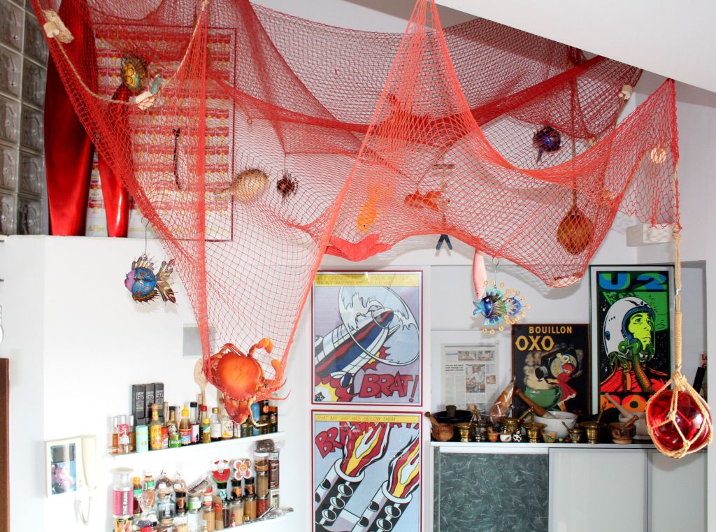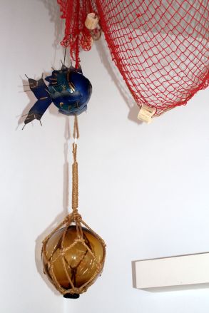 Llevaba tiempo dando vueltas a una idea que me entusiasmaba pero que debía hacerse con mimo y sin prisas. Se trata de la instalación de una red de pesca decorativa en la parte más elevada, de ella penden unos cuantos motivos marineros.