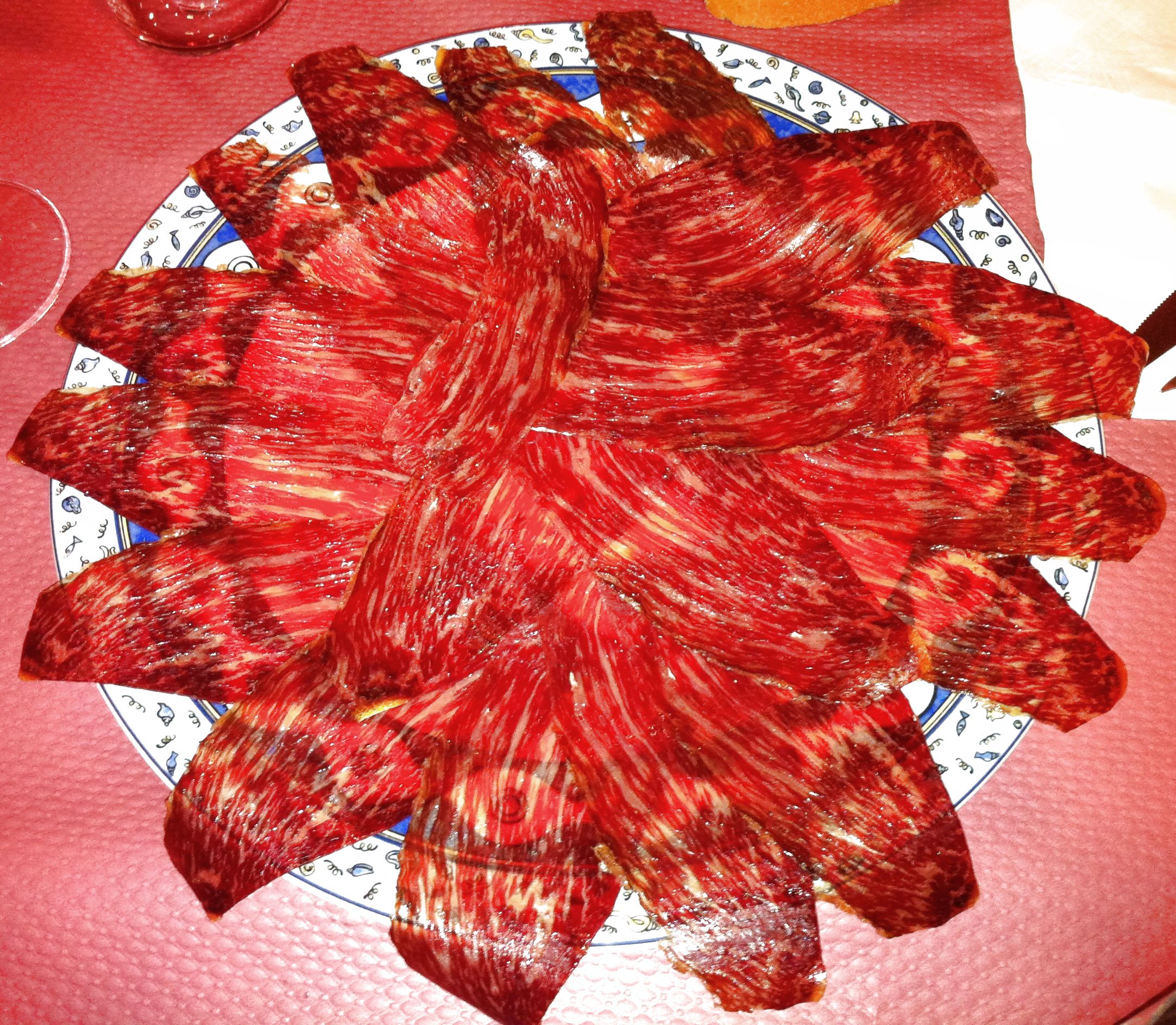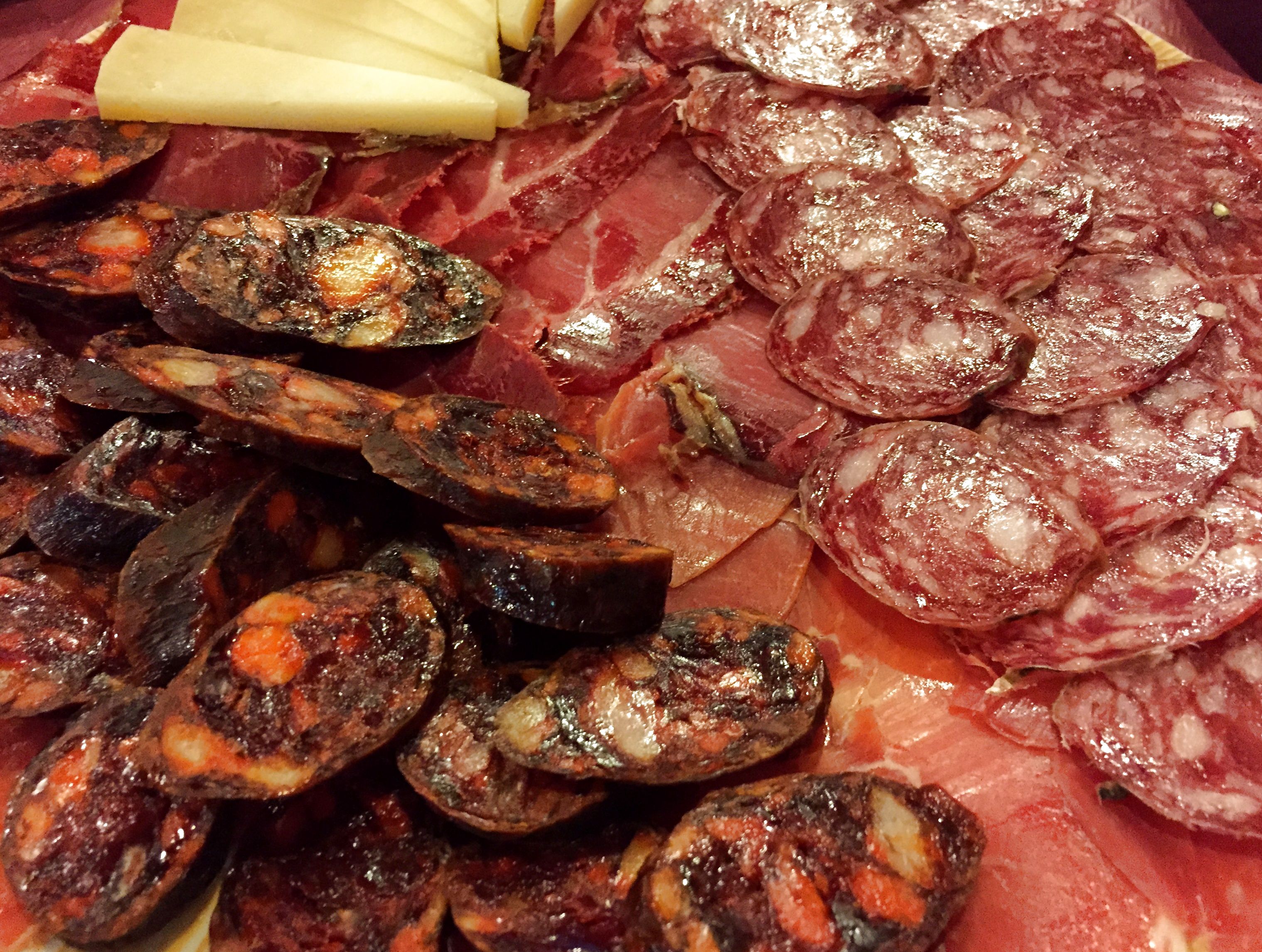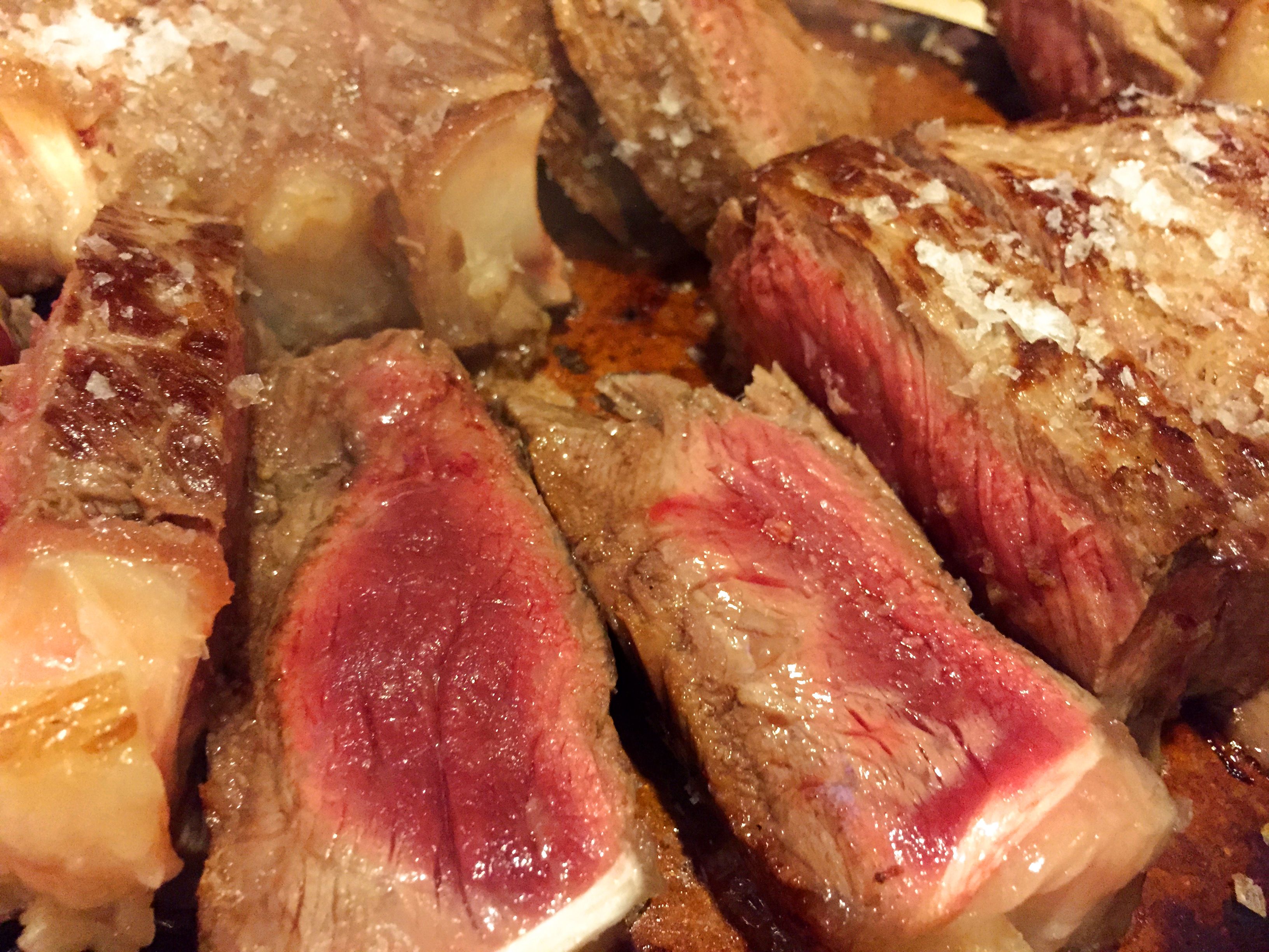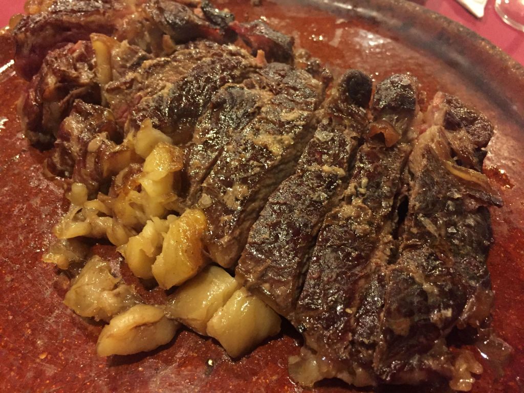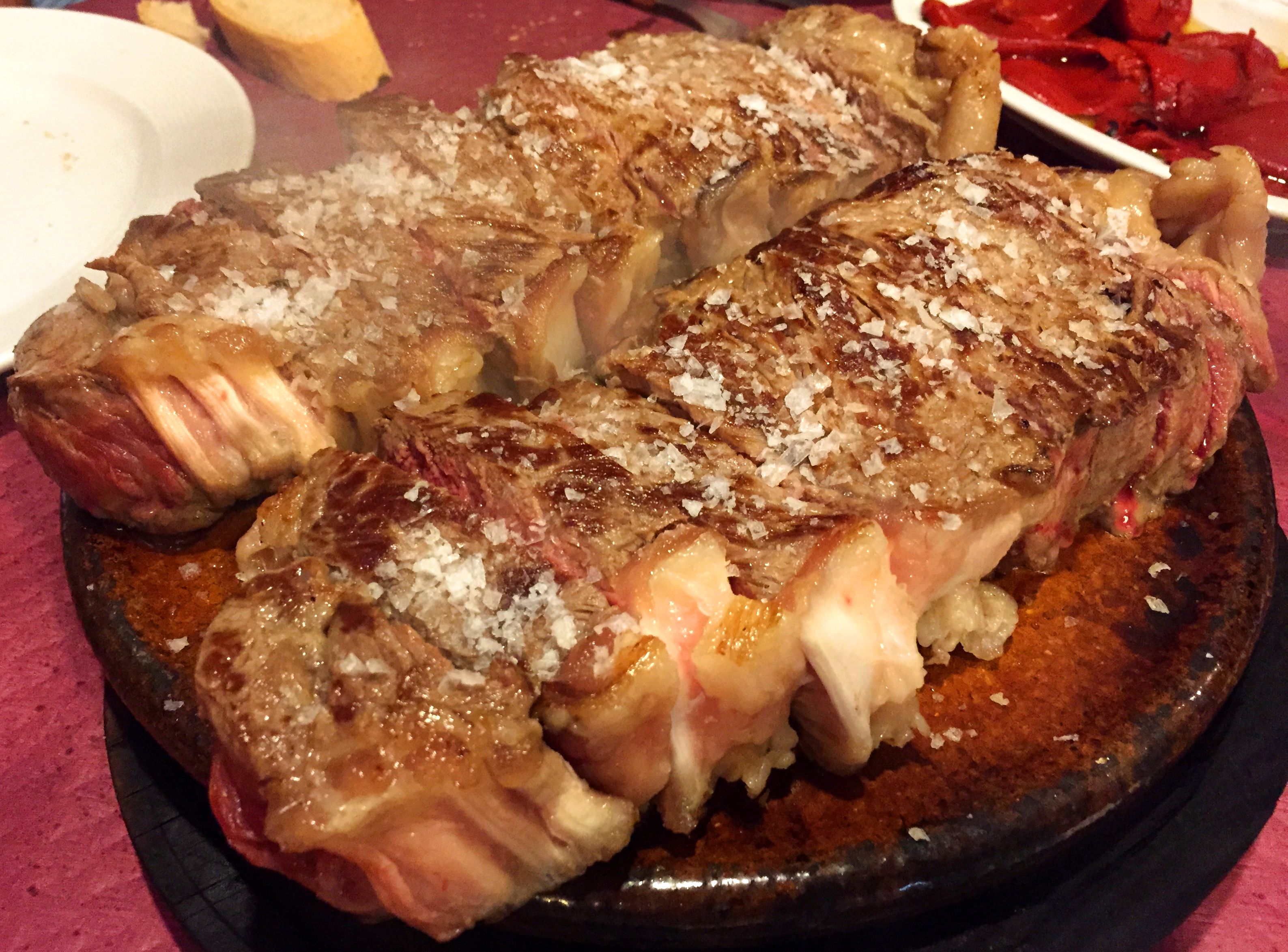 En mi grupo de amigos no solemos innovar demasiado y si hay un fijo que siempre repetimos es el chuletón de buey. El resto de entrantes varía dependiendo de nuestro estado de animo y lo mismo te caen unos embutidos variados, salteado de setas, como unos callos o morcilla de Boñar .