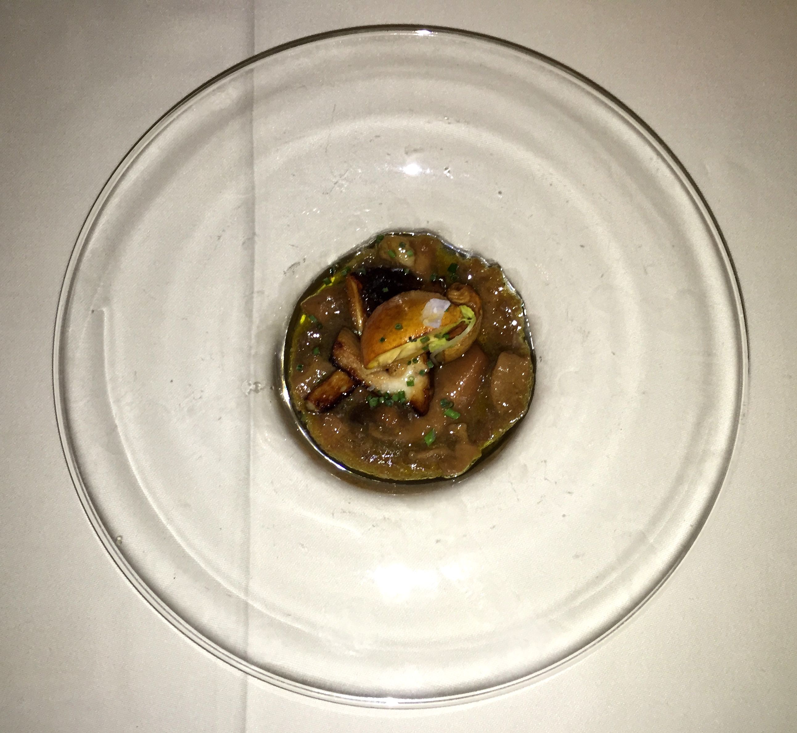 Turno del sorprendente huevo poché que estaba rebozado, cebolla confitada, puerros y cecina de buey La Finca.