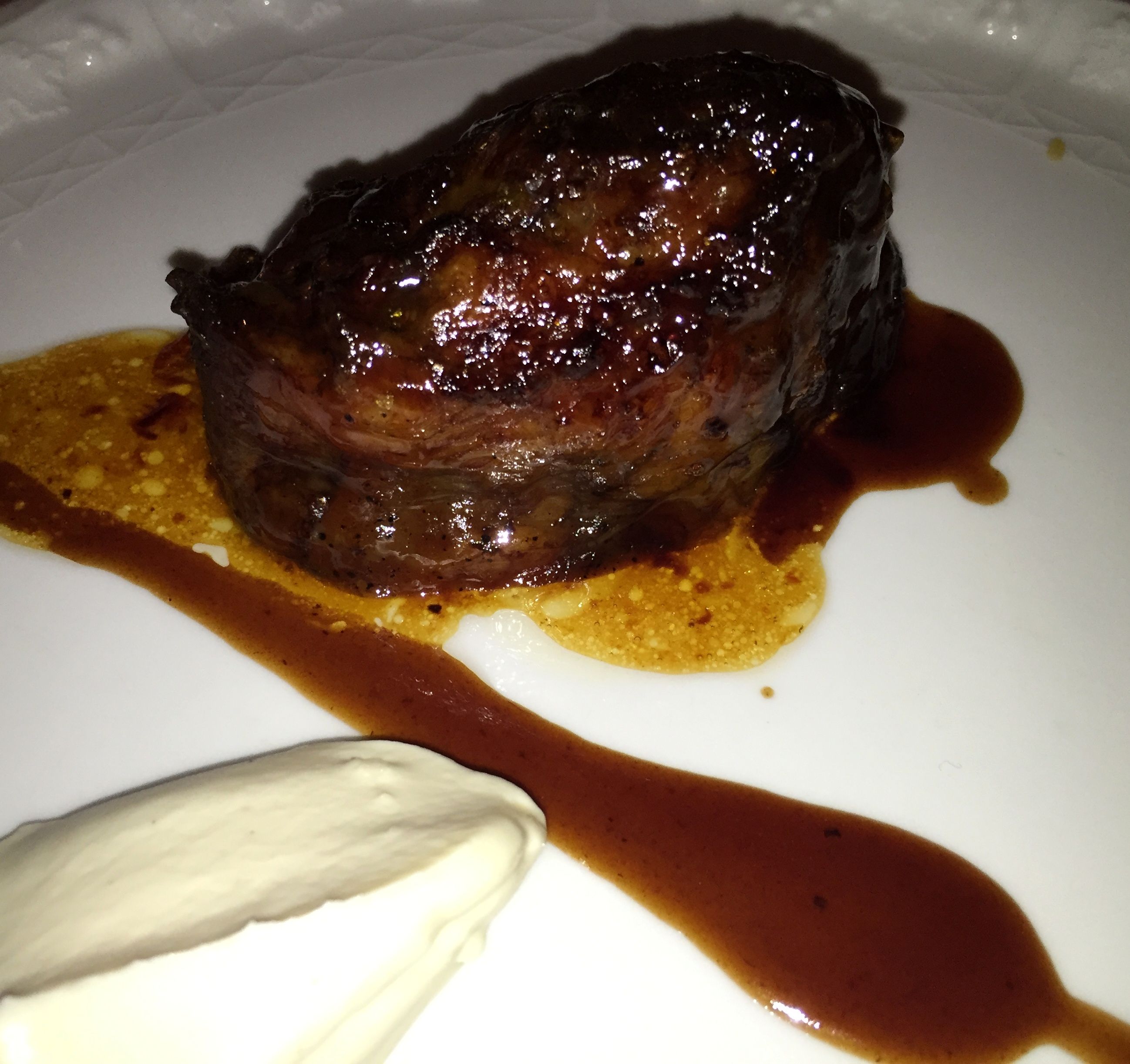 La carne vendría en forma de carrillada de ternera glaseada con salsa teriyaki y puré de apionabo.