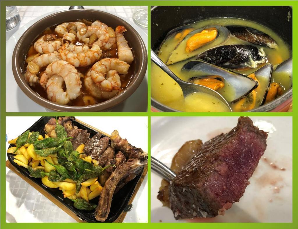 La carta es bastante extensa y además de platos contundentes de nuestra gastronomía trabajan mariscos. Como siempre suelo ir a cenar y acompañado de un grupo numeroso lo que suele imperar es el picoteo, unos cuantos platos para compartir. En esta ocasión nos despachamos con unos fritos de pixin (rape), pulpo a la parrilla, tortos con huevos, picadillo y salsa cabrales, tortos con morcilla y compota de manzana, albóndigas de venado y unos tacos de carne.