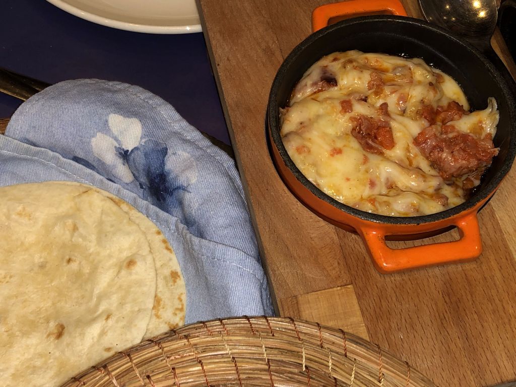 Comenzamos con un guacamole y una cazuelita de chori-queso