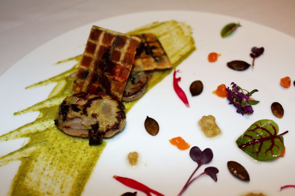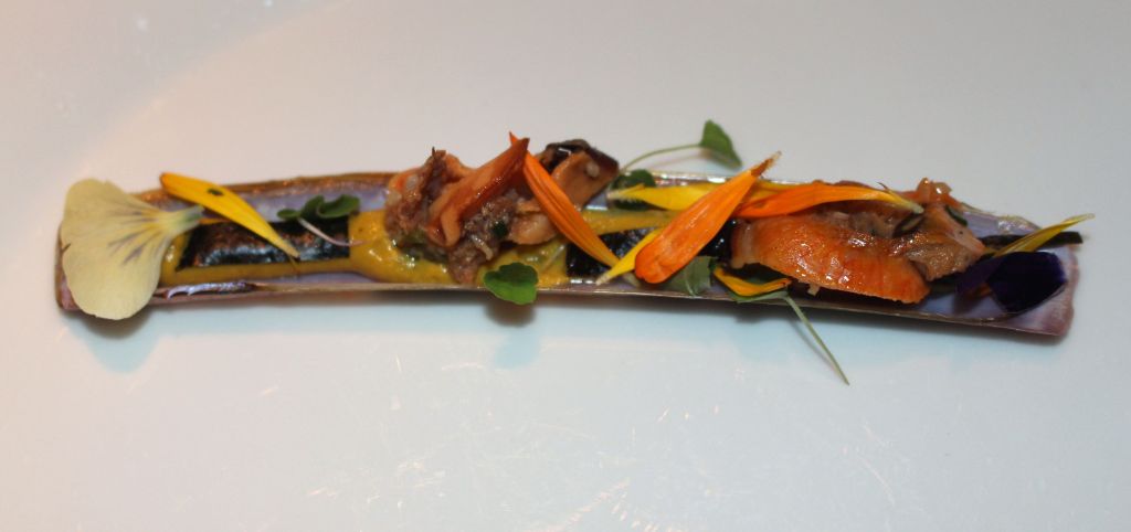 Muchos de los platos son auténticos cuadros y el Mondrian de ostras hace clara referencia al pintor holandés. Son unas ostras planchadas con «Mondrian» de barquillo crujiente y salsa de maca.