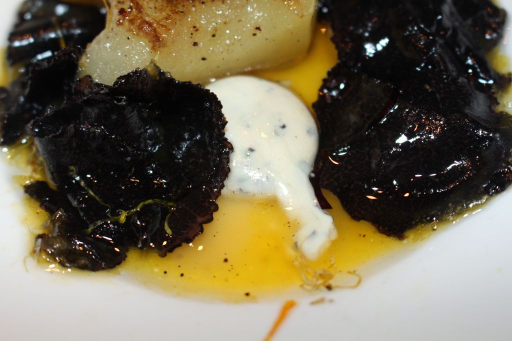 Entre las continuas sorpresas de la comida, me obsequiaron con un plato fuera de carta del que aún sigo disfrutando los aromas intensos de la trufa negra. Acompañado de patata y huevo, desató los celos de mi novia a la que prometí tratar de replicarlo y Elena me ofrecía trabajo si lo conseguía.