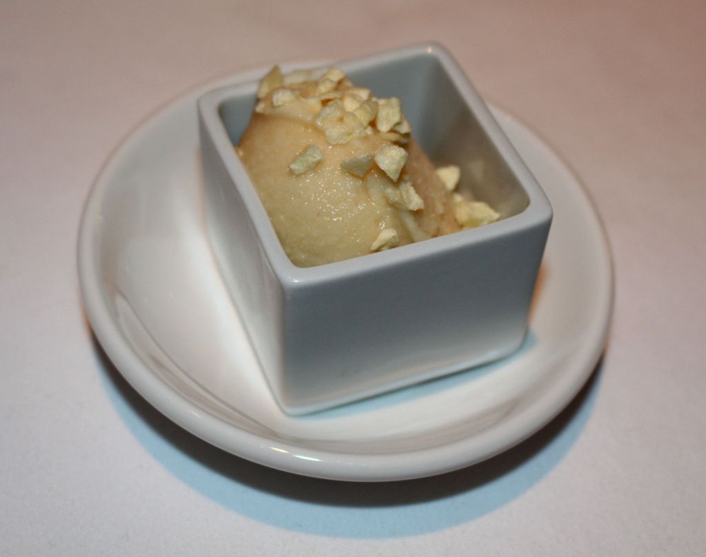 Tras el acaloramiento me vino muy bien la escarcha de castaña, un prepostre a base de helado de castaña «salseado» de un granizado de açaí y frutas.