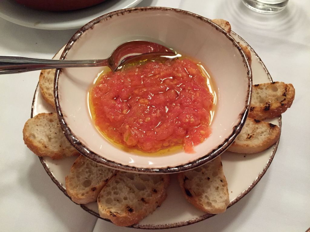 Para empezar un poco de pan de la casa, tomate rallado y aceite. Simple verdad?, pero cuando un tomate sabe a tomate, es el mayor de los manjares y los que tenían expuestos en el escaparate invitaban al vicio.
