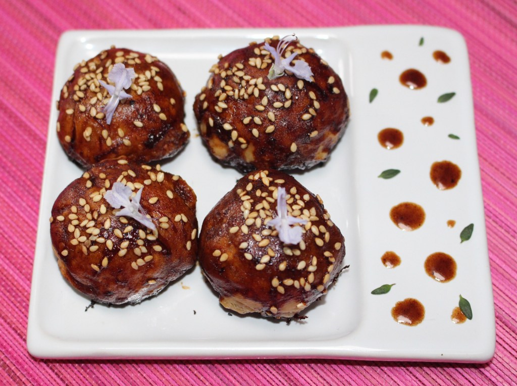 Si las servimos como snack, el comensal agradecerá una buena presentación, recordad que la comida también entra por los ojos. Pintad con unos puntos del glaseado en diferentes tamaños, unas hojas de tomillo bien puestas y unas flores de romero hacen de estos bocados, unos hordeurvres muy elegantes.
