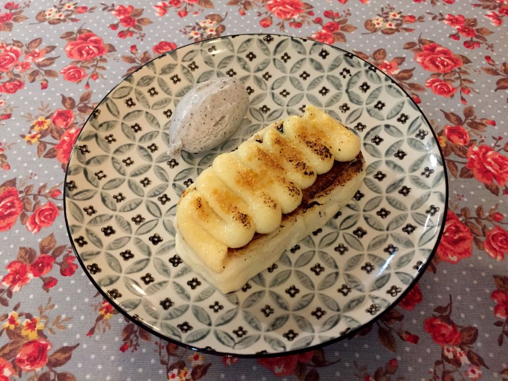 Finalizamos con la torrija oriental. Ya que nos acercamos a Semana Santa y este es un postre típico de estas fechas, os recomiendo probar esta maravilla a base de pan chino y crema de jengibre acompañada de un sorprendente helado de sésamo negro.