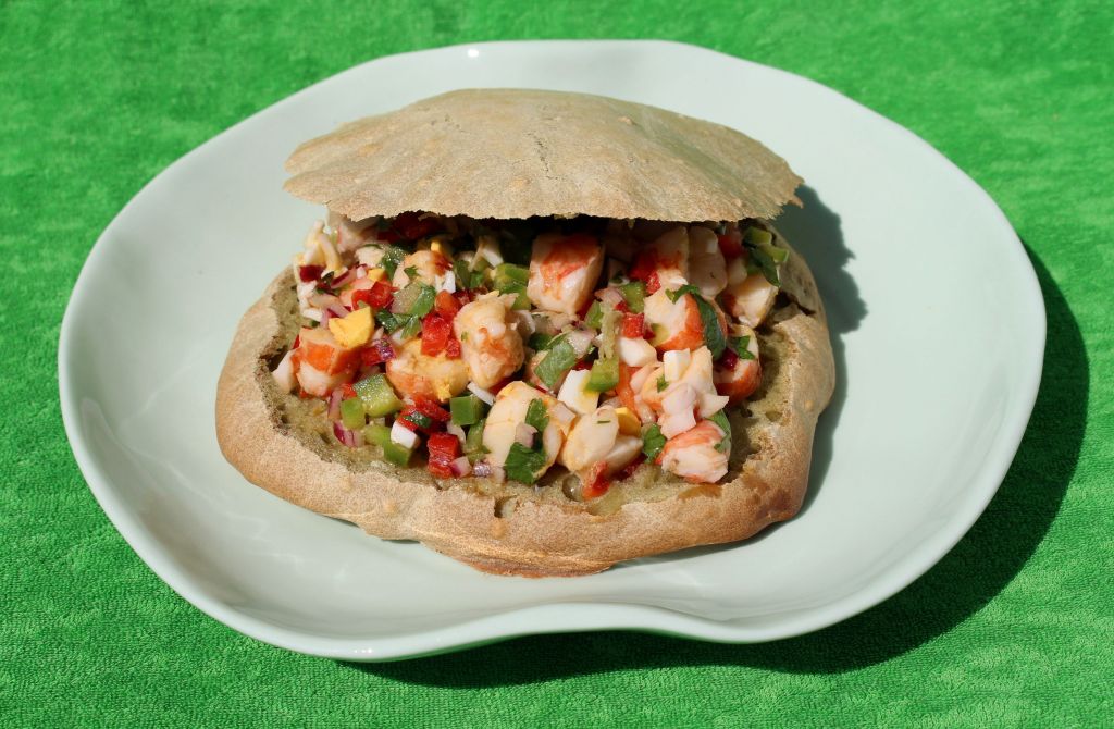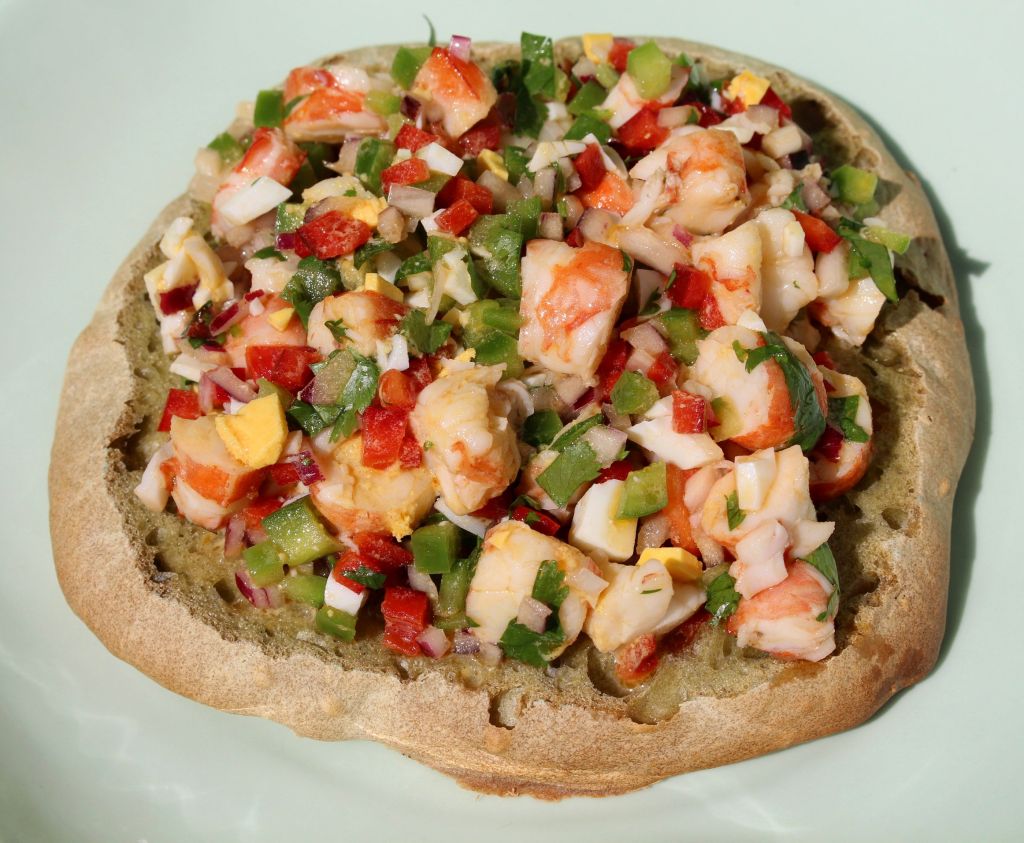Con la masa resultante hice dos versiones, algo parecido a una mollete de esas que desayunaba en Marbella y una hogaza mini, más tradicional. Obviamente, para acompañarlas tuve que hacer algún plato marinero y acabé haciendo un salpicón de langostinos y unos chipirones afogaos.