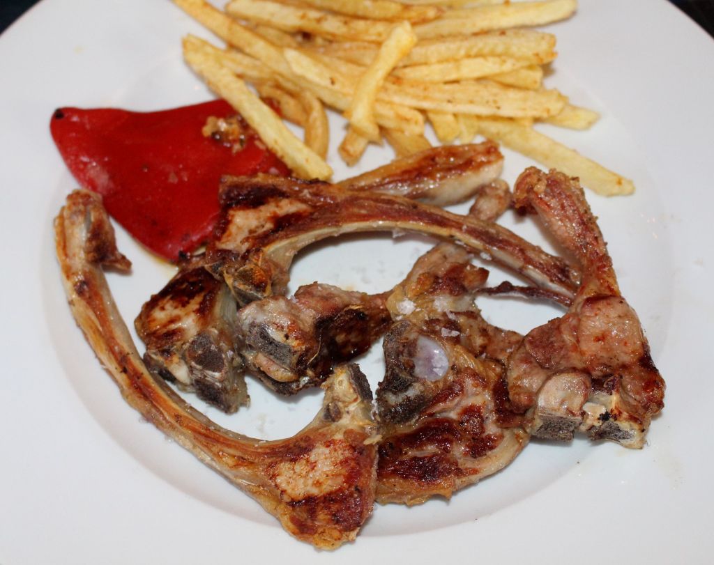 Ahora entramos en harina de verdad, el cochinillo, unas chuletillas de lechazo y mi chuletón de carne roja.