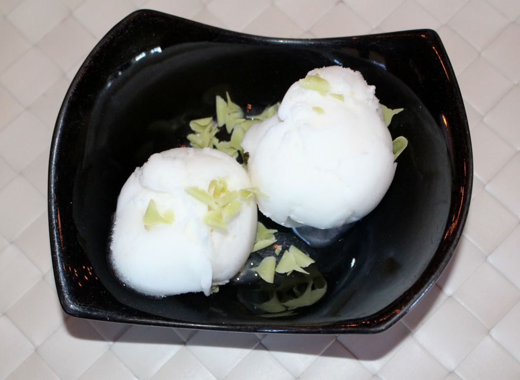 Para rematar la faena un par de sorbetes y un par de tartas, una de naranja y otra de queso.
