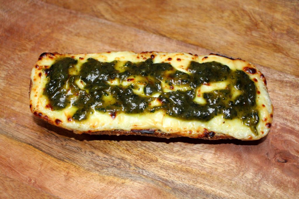 Tal y como os comenté más arriba, en una pasta o pizza es delicioso pero untado en una simple tostada de pan crujiente con un poco de tomate natural o como en este caso un queso Afuega’l Pitu fundido en un pan de chía, puede convertirse en el mejor aliado energético de vuestros desayunos.