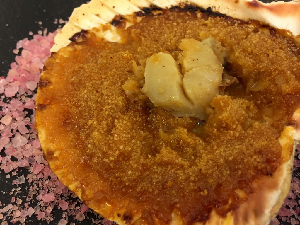 De segundo optamos por unas vieiras, las tradicionales a la gallega con su sofrito y horneadas con pan rallado.