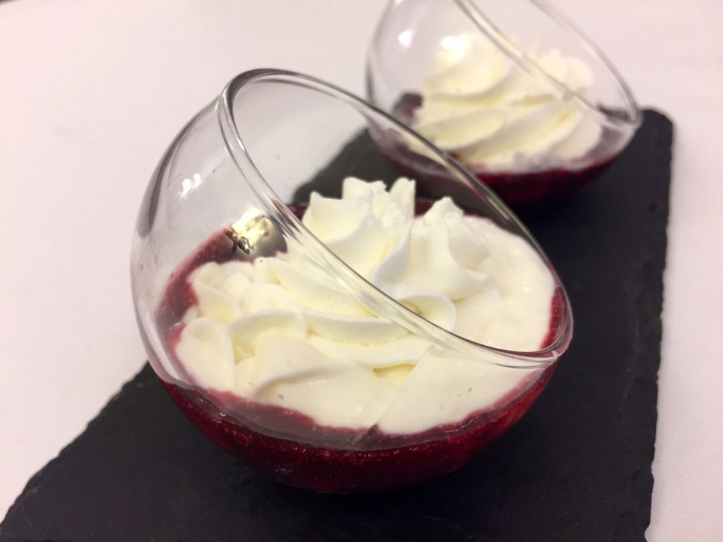 Rematamos con una larpeirada atención de la casa. Un cremosos de frutos rojos con nata.
