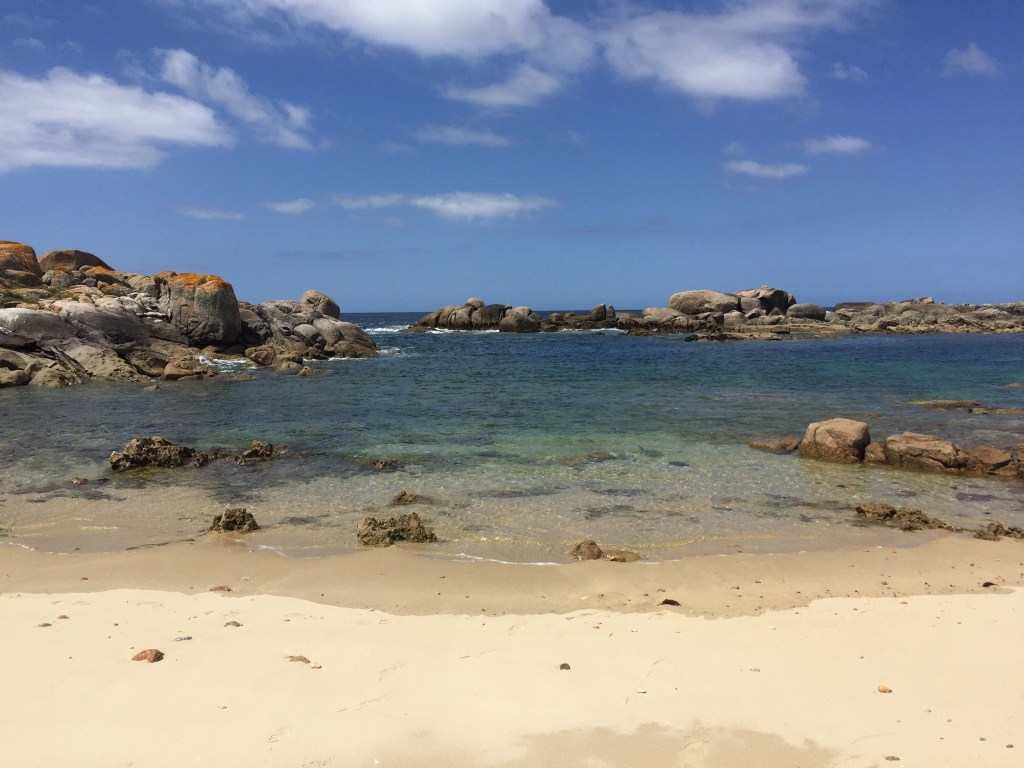 Como no hay mal que por bien no venga, la ausencia de gente nos permitió disfrutar de las calas de la ruta de Pedras Negras como si fuesen nuestra playa privada. La leve lluvia del día anterior dejó una jornada de cielos nítidos donde el sol apretaba de lo lindo, una excusa más para darse un baño en sus cristalinas aguas.