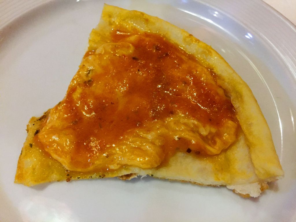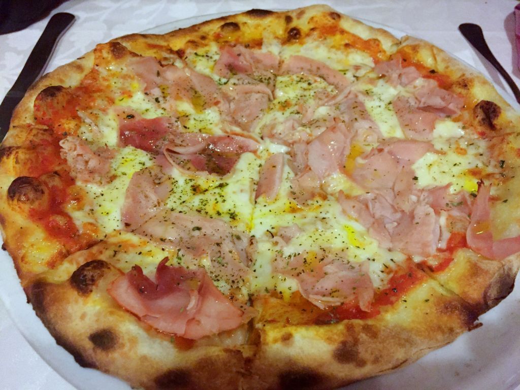 Margheritta con jamón: tomate, mozzarella, jamón y orégano.