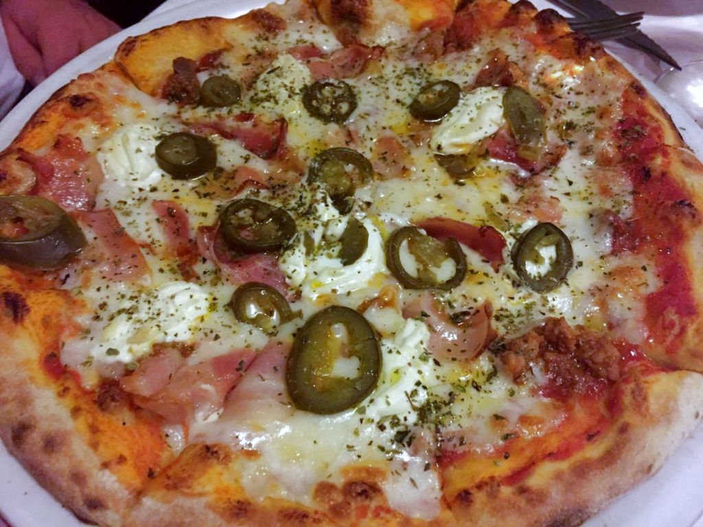 Messicana: tomate, mozzarella, carne picada, bacon, chile jalapeño y Philadelphia al ajo.