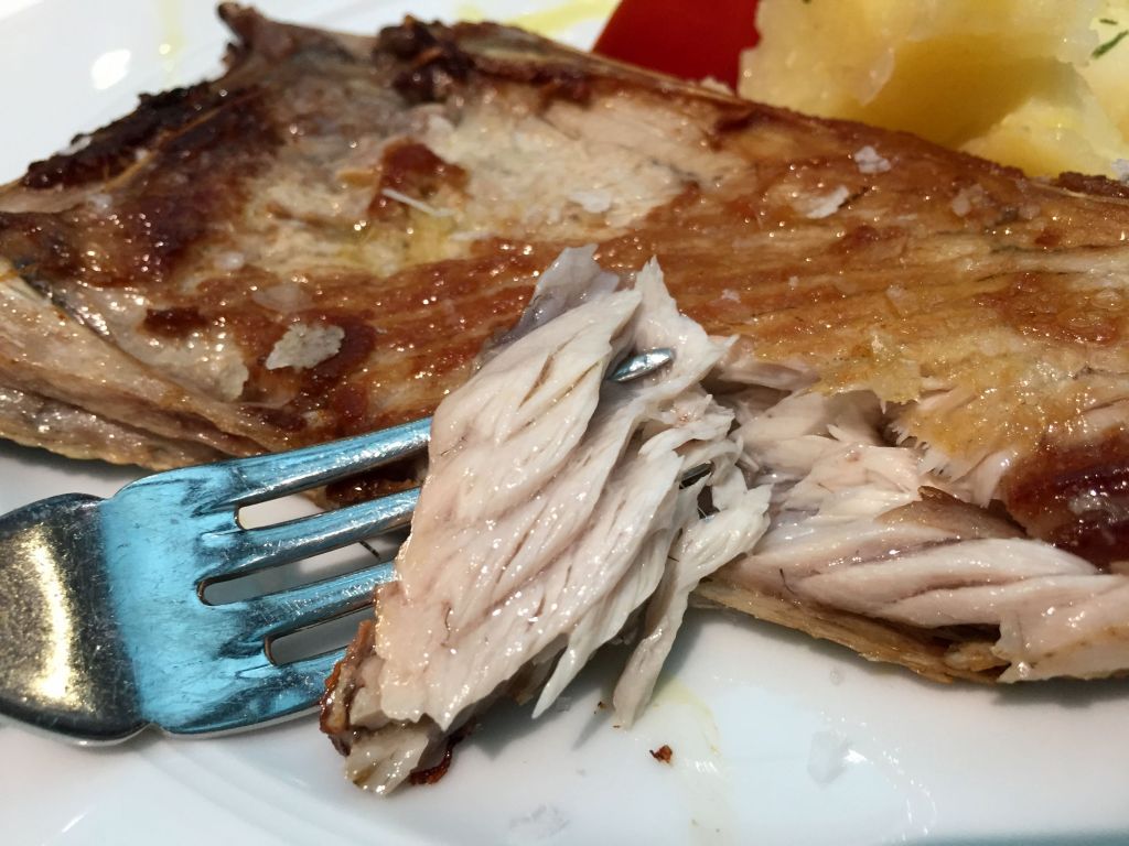 Si hablamos de pescados, el respeto por la materia prima es máximo, su frescura hace que la mejor manera de disfrutarlos sea a la plancha y sus acompañamientos de patata cocida y tomate sean meramente decorativos, menos es más.