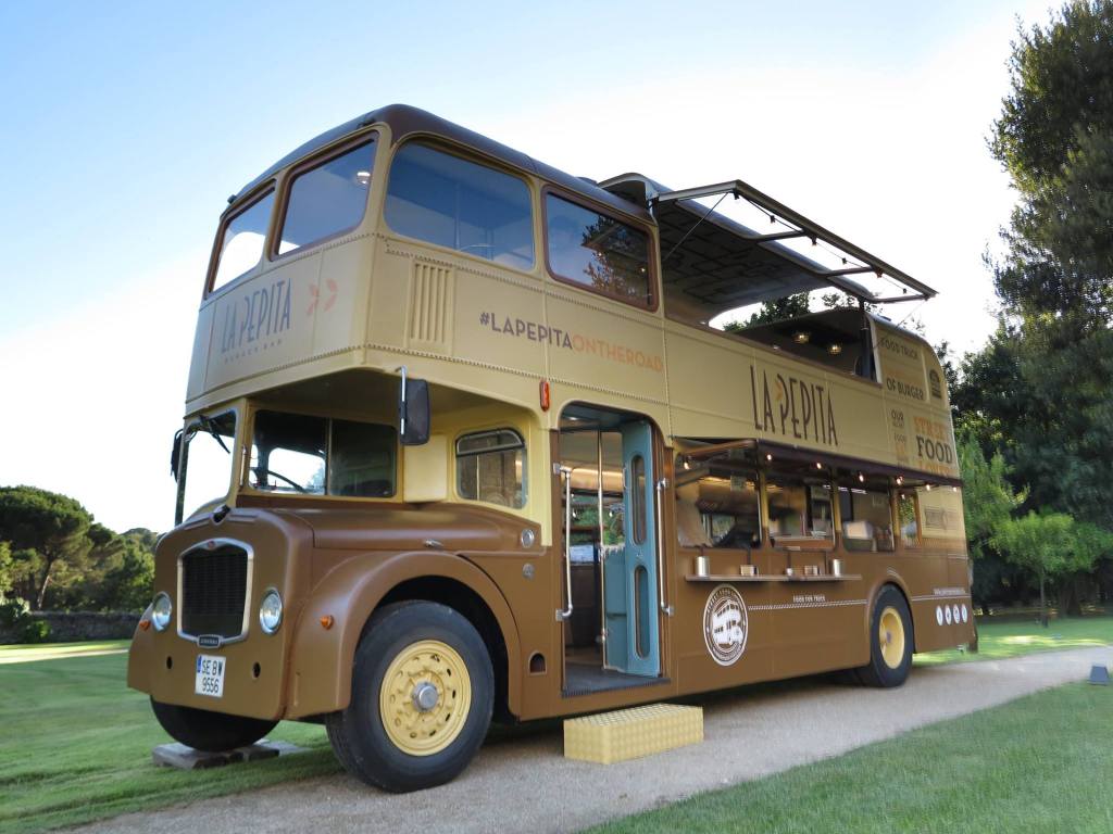 La Pepita se hace notar y en los días previos a su apertura, circulaba por nuestras calles el magnífico autobus ingles de dos pisos que #lapepitaontheroad utiliza para estar presente en eventos, conciertos, acontecimientos gastronómicos y deportivos, fiestas privadas, etc…