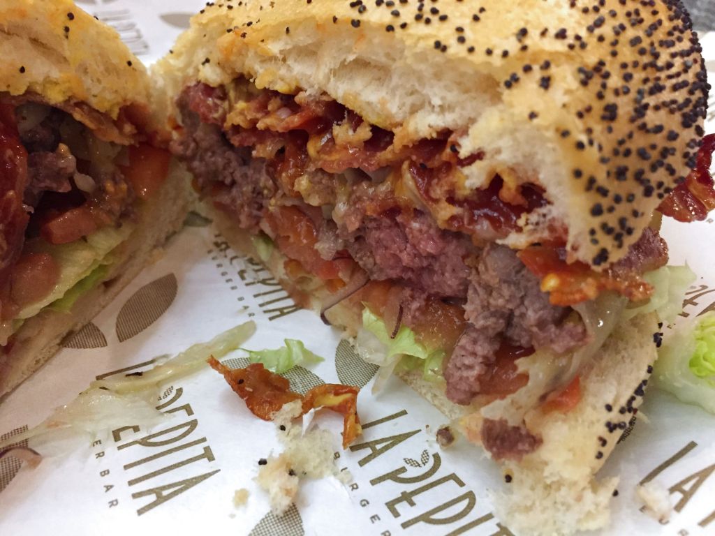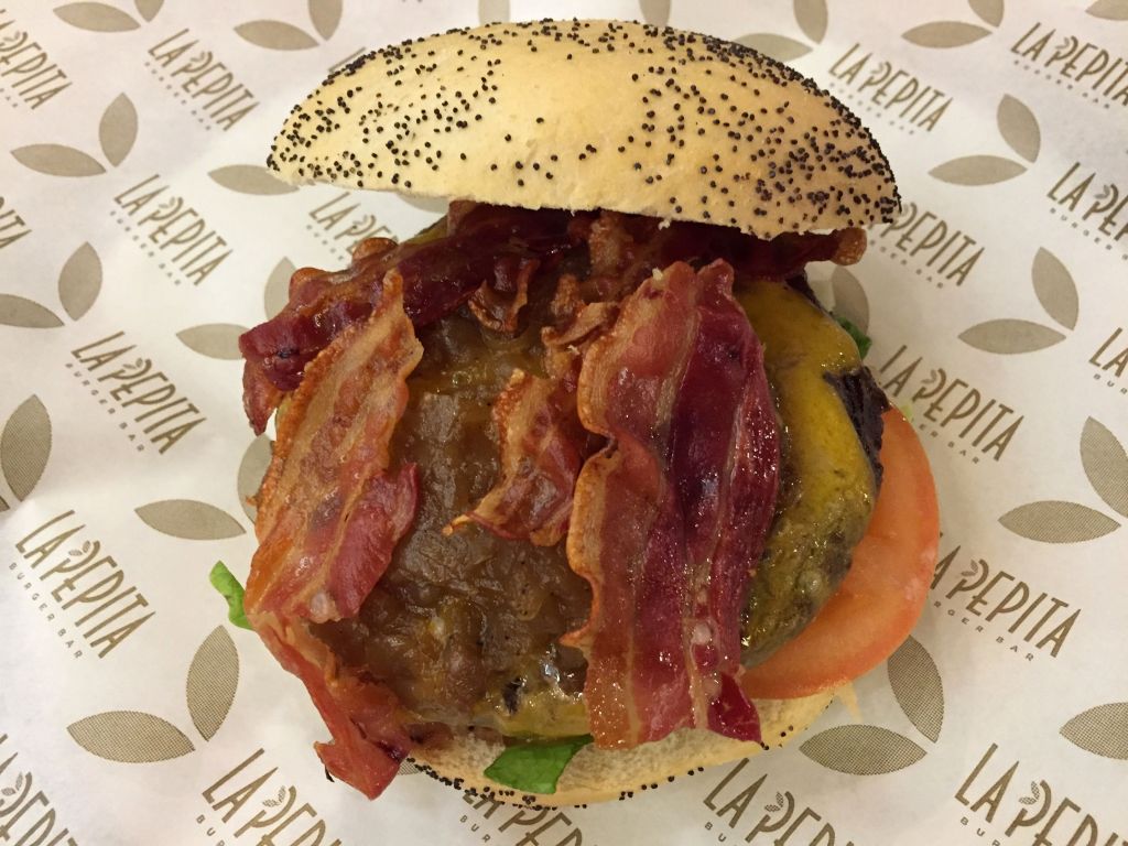 Las hamburguesas que elegimos en esta ocasión fueron La Pepita Reily, 180grs de carne de vacuno, bacon, pepinillos, cheddar, salsa barbacoa, lechuga, tomate y cebolla roja.