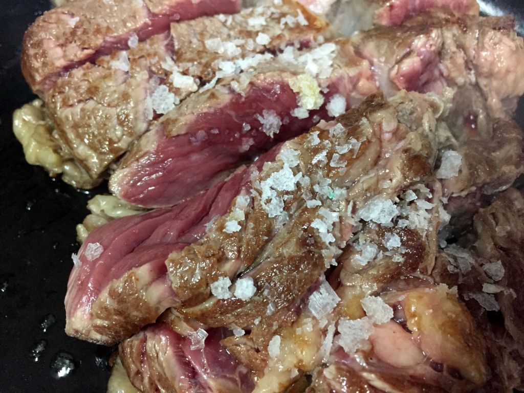 La mencionada longaniza de Avilés y el chuletón de ternera sembraron la mesa de suspiros y la penitencia de algunas se convirtió en mi particular resurrección. Unos pimientos del Padrón y patatas fritas lo acompañaron a la perfección mientras las botellas vacías de sidra Canal se apilaban.