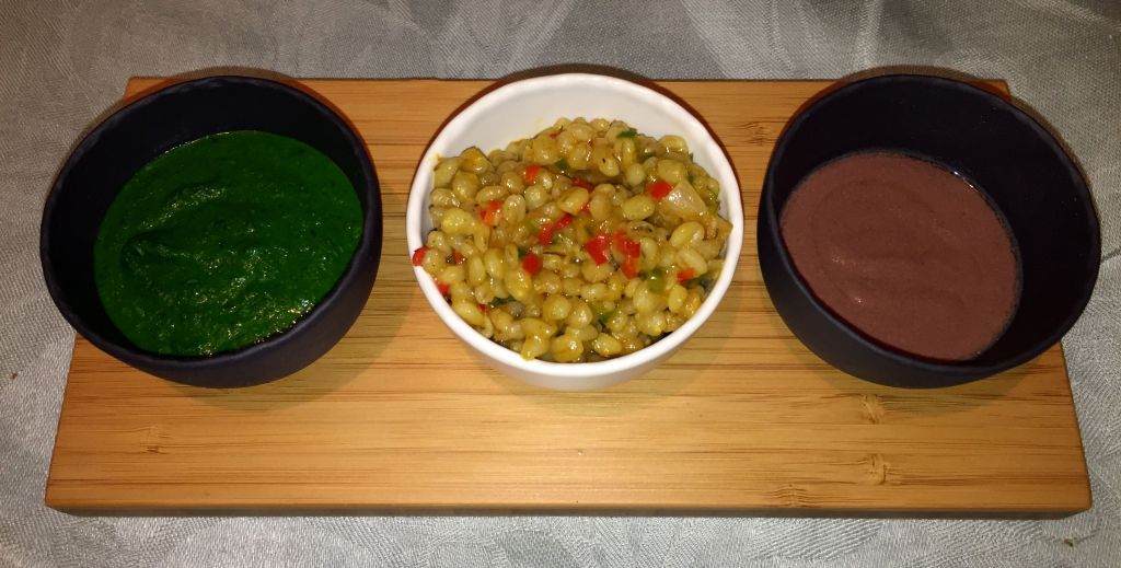De aperitivo nos sirvieron unos grissini con una salsa y una copita, creo que de mango. Esto es lo que tiene dejar el trabajo atrasado pues la visita se remonta a hace más de un año.