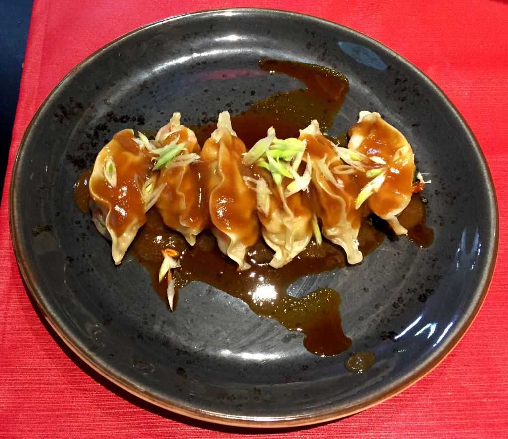 Llegaron las gyozas de sepia y aunque no era el día de los fuegos artificiales la explosión de sabor, la finura de la masa y la sabrosa salsa iluminaron nuestras caras.