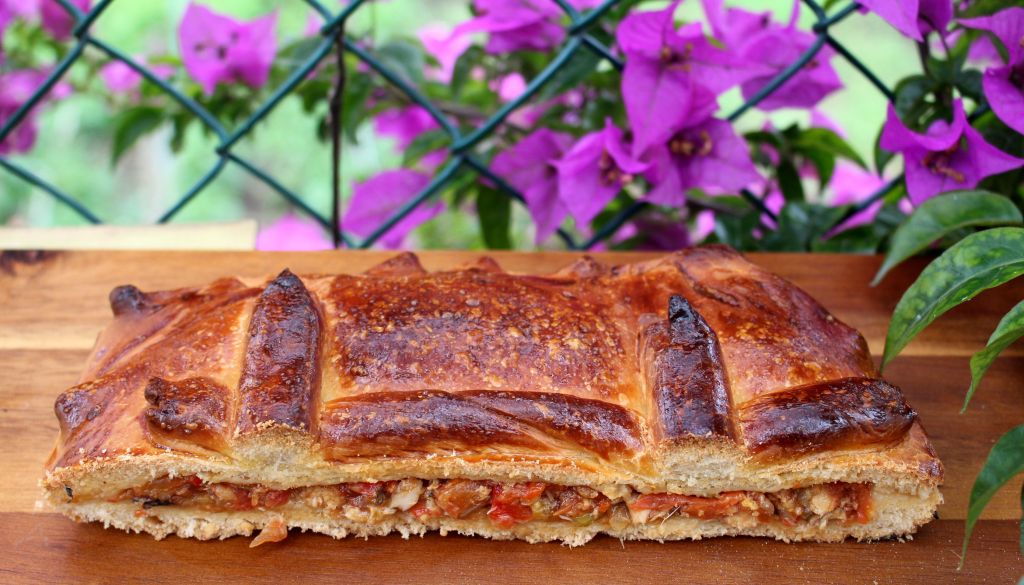 Para una empanada, tan importante como el relleno resulta la masa. Una envoltura mediocre puede arruinar el interior y viceversa. Para un relleno de sardinas o xoubas, como las llaman en Galicia, no me quedaba otra que hacer la típica masa de pan aunque seguro que con una de hojaldre estaría igual de buena.