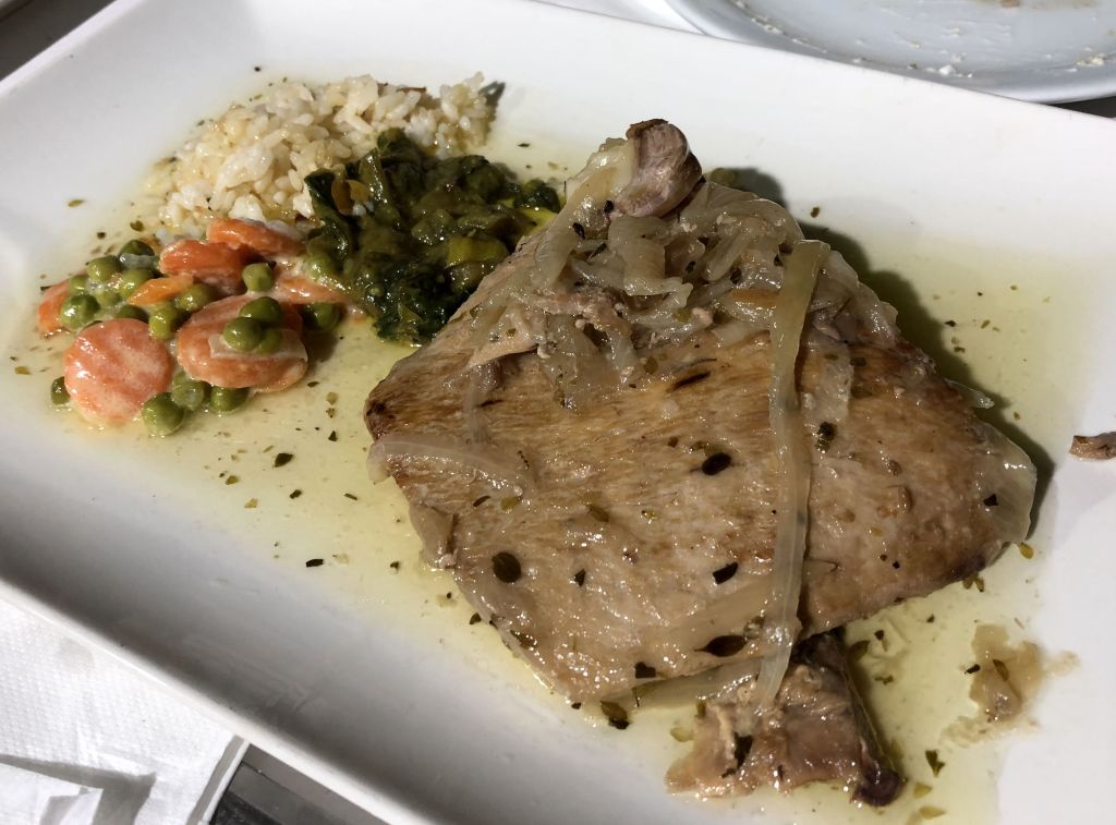 Tras un largo viaje, aún con hambre el cansancio era manifiesto y la comanda no fue excesiva para lo que yo estoy acostumbrado. Estaba claro que tras 900kms el atún rojo debía ser uno de los deseados imprescindibles, que complementamos con unos boquerones en vinagre un tanto peculiares en su acompañamiento de patatas, unos recomendados gambones fritos, puntillitas y cazón en adobo.