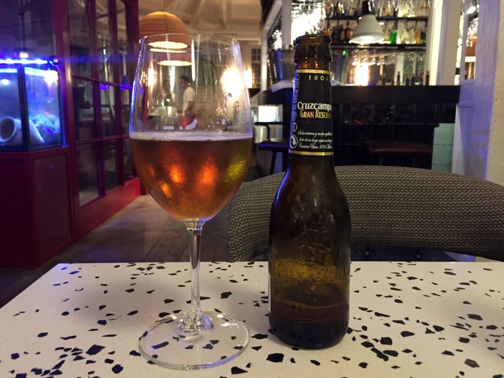 Para beber, agua y una Cruzcampo Reserva que está rica pero….se echa en falta una mayor diversidad de cervezas. Hay que potenciar esas numerosas malagueñas salerosas y artesanas e imponerse al dictado de las grandes marcas.