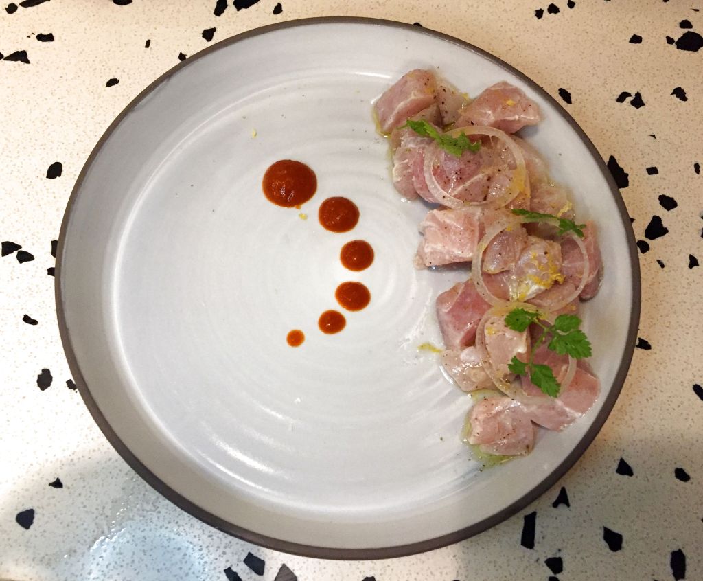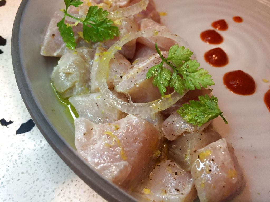 Uno de los días tenían dentro de la carta especial esta tapa de pez limón al limón, una marinado que se acompaña de una salsa sriracha.
