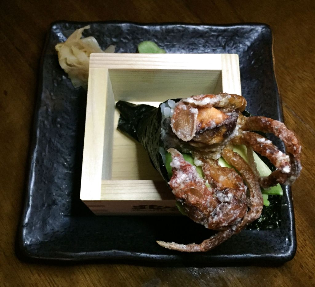 Seguimos con un temaki de cangrejo de concha blanda. No se si es por su forma cónica o porque son más grandes, los temaki son mi sushi favorito.