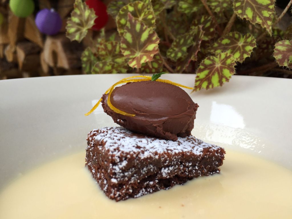 Concluimos con la parte dulce. Esta claro que saben de repostería, el brownie al nivel de los mejores establecimientos en casa del Tío Sam, pero es que además se completaba con una crema inglesa a la naranja y una ganache de chocolate y cardamomo. Vamos, una lujuria con la que uno se queda a gusto tras haber pecado.