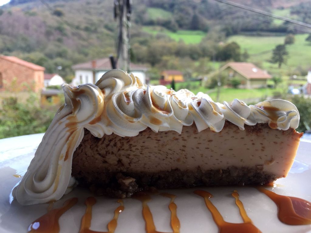 Por si alguno se queda con hambre, los postres son a lo bestia. La tarta de frixuelos con chocolate tiene una altura descomunal y cuesta tanto hacerse con ella como afrontar las rampas del Angliru.