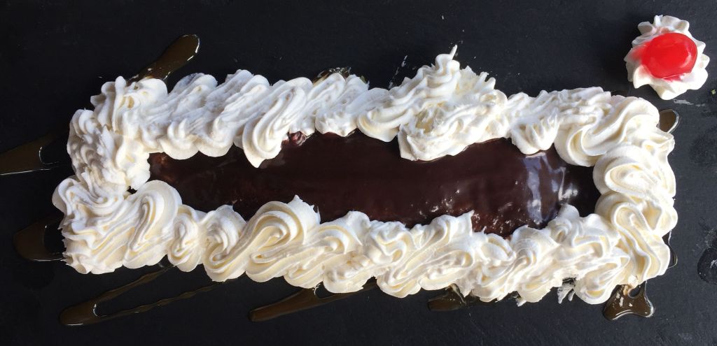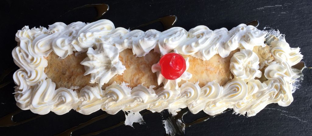 La tarta de nuez y unos frixuelos rellenos de arroz con leche y otro de crema de flan de sobaos cubierto con chocolate con excesiva abundancia de nata montada (eso si, casera), fueron el colofón perfecto para este reencuentro.