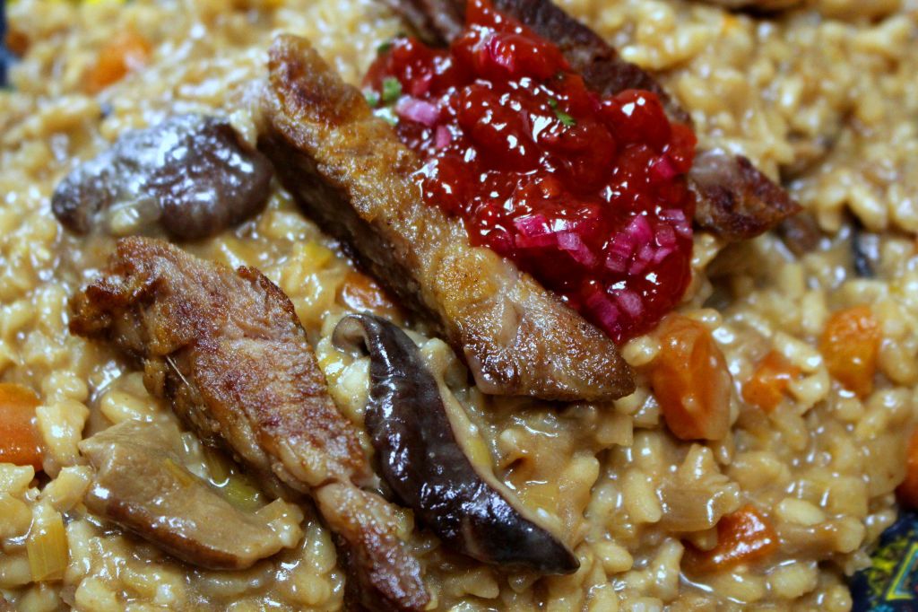 El chutney resultante está perfecto para acompañar pero podéis completarlo con un poco de cebolla morada y cilantro, dará color, sabor y contraste de texturas. En estas fotos lo veréis acompañando una pluma ibérica y un risotto de setas y pluma.