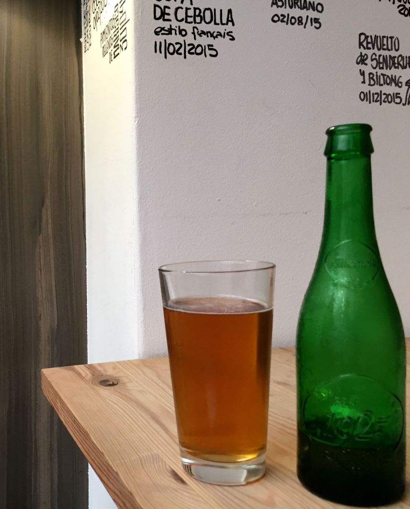 Las originales cajas de fruta que cuelgan del techo en su entrada cobijan un espacio reducido de mesas altas y bajas donde poder refrescar el gaznate. Un biombo de cuadrantes ahuecados delimita la agitada zona de barra, que está flaqueada por los característicos muros de piedra propios de la antigüedad del edificio. Una pequeña zona de trabajo y pase, es la extensión de una cocina reducida que da más valor al trabajo que son capaces de sacar.