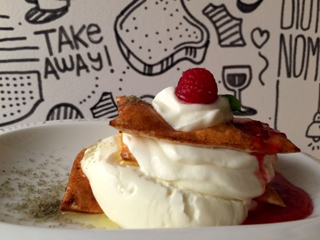 Pequeños cuadros formado asimetrías, y paredes decoradas con dibujos a mano alzada, conviven con parte de la historia del local donde queda constancia de recetas pasadas. Un cuadro de un orondo señor que nos recuerda a Hitchcock será el reflejo de un espejo en el que mirarnos acabada la comida.