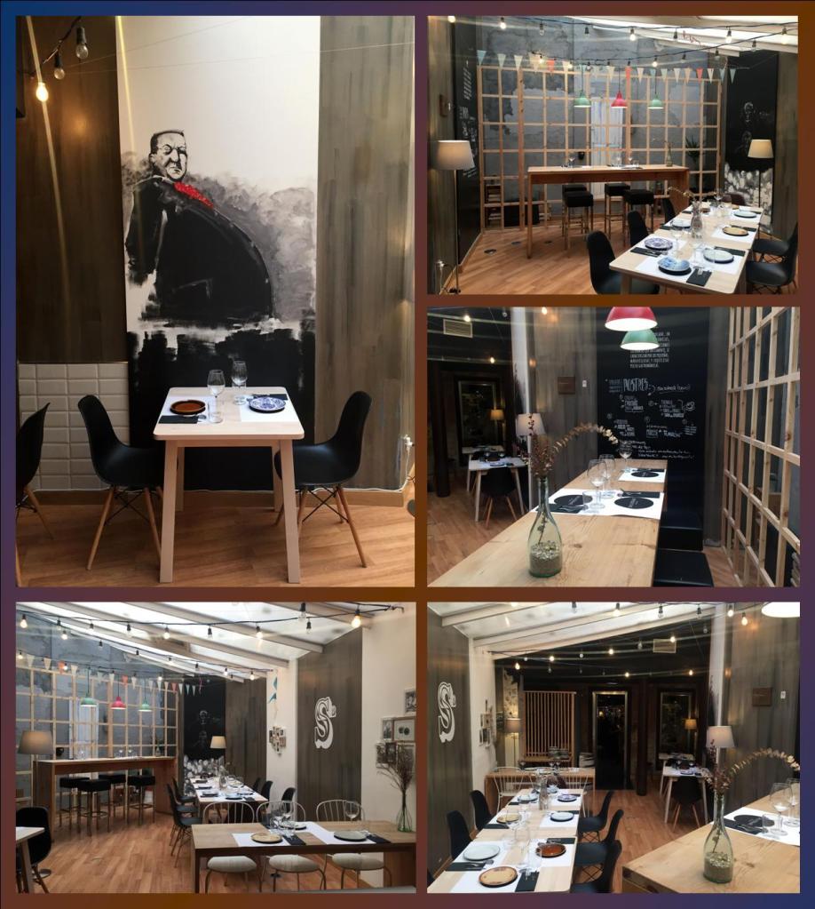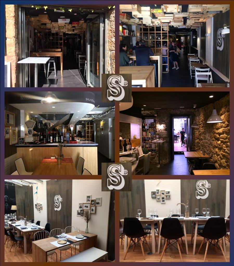 Salazogue es otro de esos locales que enamoran, nada hace indicar que su escasa línea de fachada y su entrada de configuración habitual de bar-enoteca-bistró desemboque en un comedor que aún no siendo grande en tamaño, es grande en gusto por una decoración que apetece llevarse al salón de tu casa.