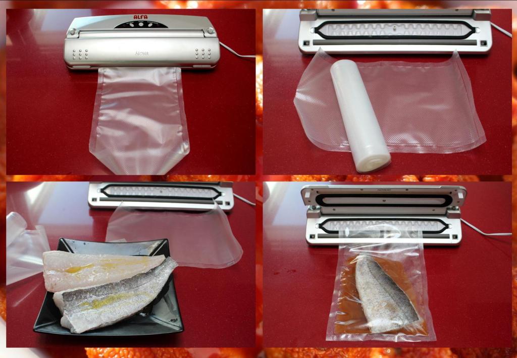 Para esta receta he incluido dos técnicas que disponiendo de los aparatos adecuados, resulta muy fácil. Por un lado hice una impregnación del pescado usando una máquina de vacío, hay gente que de forma incorrecta lo llama osmotización. Si os interesa el tema pinchar en este clarificador enlace donde os explican las diferencias.