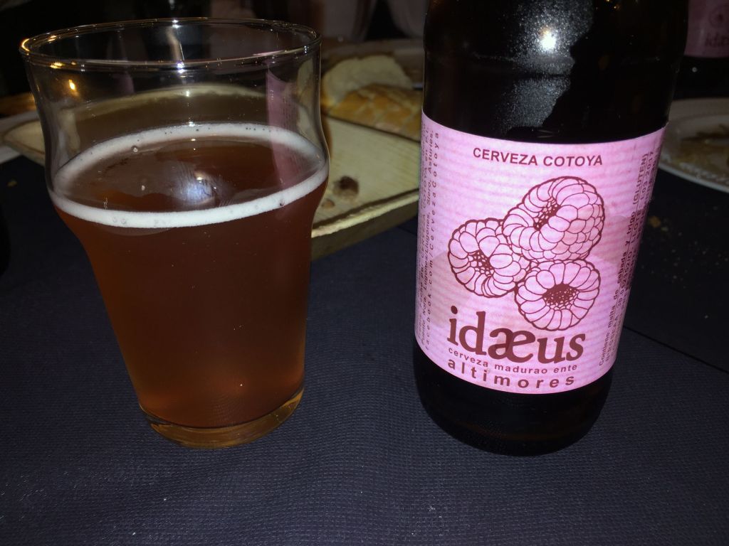 Seguimos con el magnífico perrito acompañado de la Caleya Goma2, una IPA con sabores intensos a fruta tropical y la sorprendente Idaeus de Cotoya, una cerveza de frambuesa muy alejada de sabores dulces empalagosos que ofrecen otras marcas.